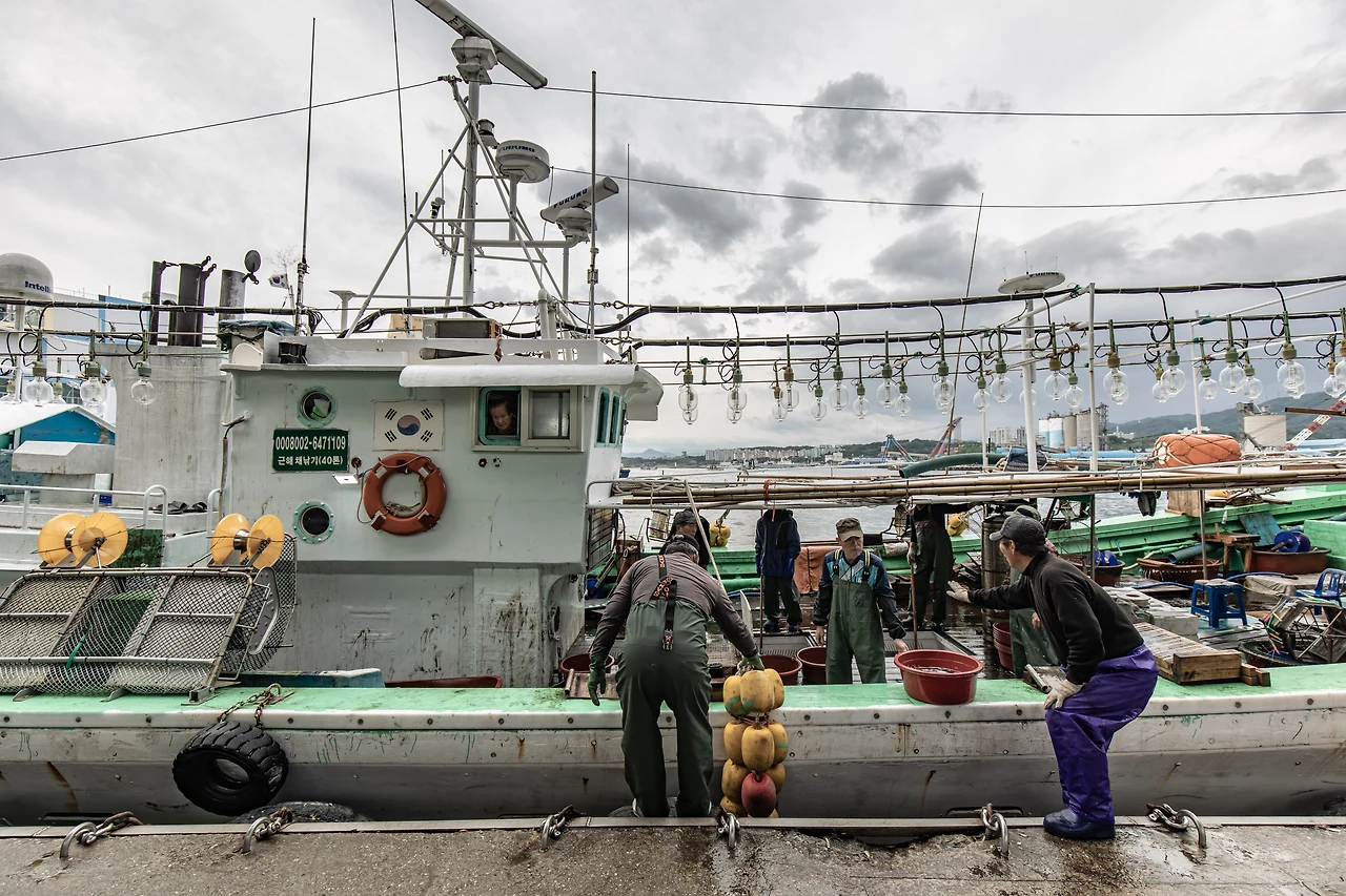"내 이름은 오징어. 따듯한 동쪽 바다 깊은 곳에 살고 있지. 어젯밤엔 무서운 일을 당했는데 내 얘기 한 번 들어볼래? 글쎄, 어제는 밤바다를 누비며 유유자적 춤을 추고 있었는데 말이야 수면 위로 보름달같이 밝은 빛이 보이더라고. 내가 또 호기심이 많아서 불빛이라면 사족을 못 쓰잖아? 불빛을 따라 내려오는 동아줄을 덥썩 잡았지. 그랬더니 몸이 '쑥'하고 빨려서 금세 물 밖으로 내동댕이 쳐지더라고.