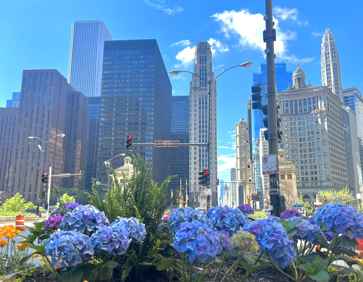 오늘 아침엔 날씨가 좋아서 남편의 출근길을 배웅했다. 미시건 스트릿은 쇼핑할 곳도 많고 멋진 건물도 많아서 걷기에는 참 좋다. 얼마 전까지는 거리에 온통 튤립이 만개해 있더니, 오월이라 그런가 튤립은 다 떨어지고 휑뎅그레하게 튤립의 술만 남아있었다.