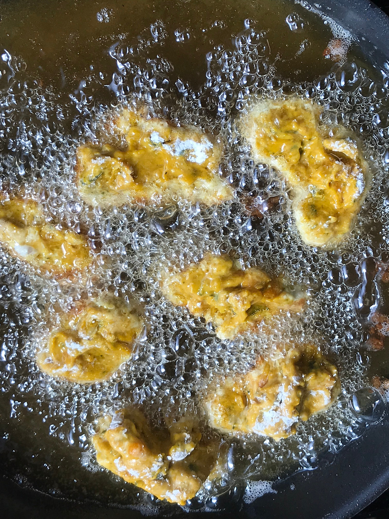 튀길 때 기름 거품이 벼랑 위의 포뇨에 나오는 거품처럼 서로 강하게 자기주장하는 것 같이 보여 너무 귀여웠답니다.