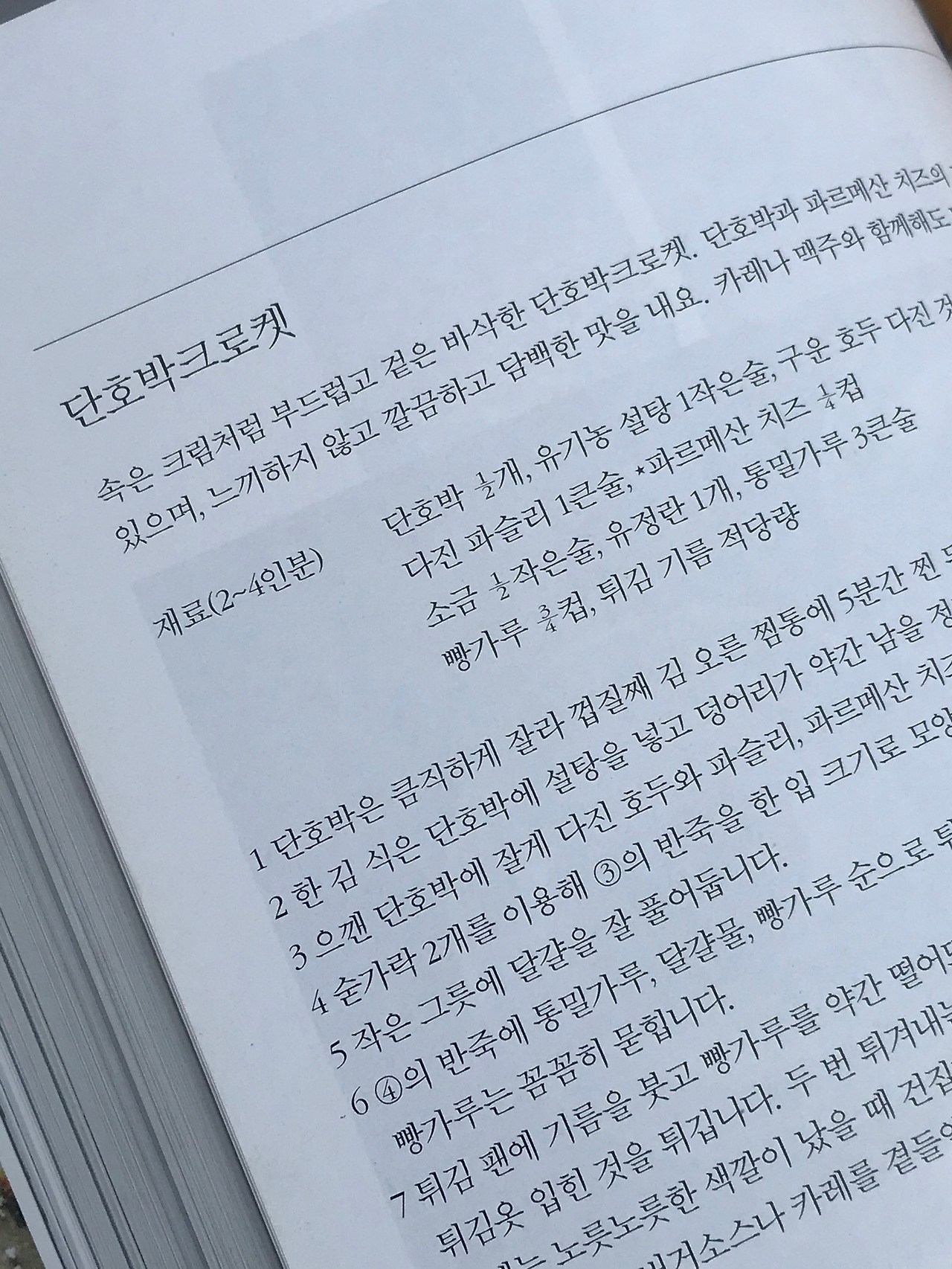 나물이나, 비빔국수와 같이 육고기가 들어가 있지 않은 음식을 조리한 경험은 많습니다. 하지만 채식을 해야지! 하고 찬을 준비해본 건 오늘이 처음입니다. 책을 펼쳤을 때, 가장 눈에 띄던 재료인 단호박을 가지고 만드는 크로켓에 도전을 해봤답니다.