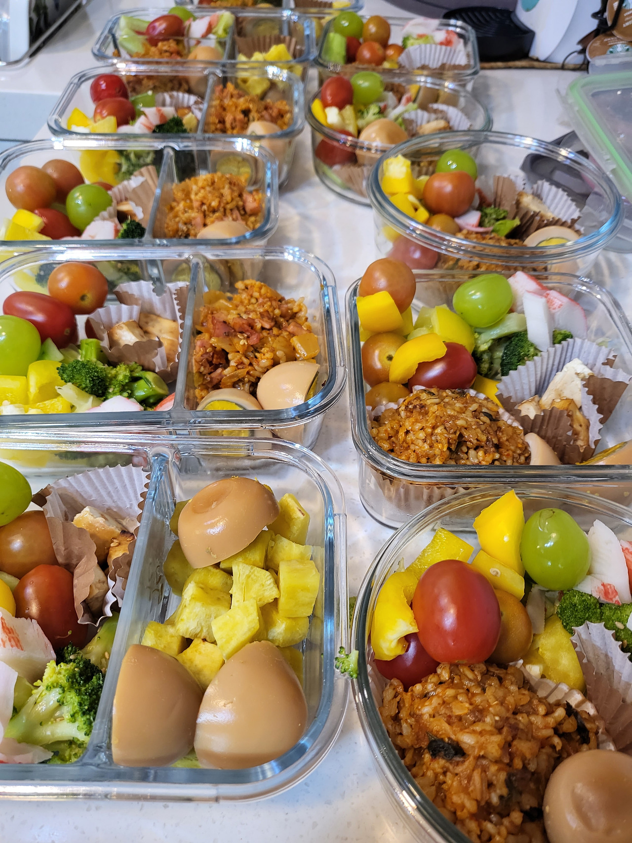 처음에는 아주 칸막이가 촘촘한 반찬통을 샀다. 칸막이가 촘촘해 칸이 작고 여러 개여서 여러 개의 반찬을 조금씩 넣을 수 있는 것으로 골랐다. 주말에 이것저것 반찬을 해서 하루에 한 개씩 계산해서 최소 다섯 개 이상의 반찬통을 채워놓았다. 반찬의 가짓수는 열개 정도 해서 고루고루 겹치치 않게 넣어놓았다.
