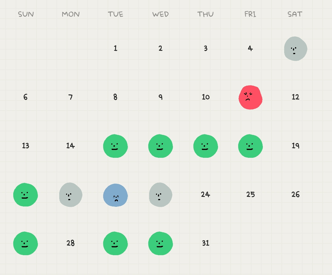 나는 개인적로 MOODA라는 어플을 이용하며, 굳이 꼭 매일매일 감정 일기를 쓰진 않는다. 정말 우울하거나, 평온하거나, 쓰고 싶은 날만 쓰는 편이다.