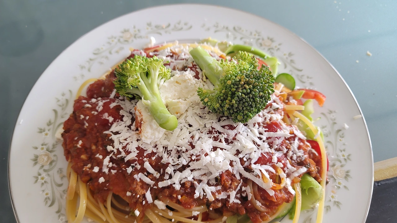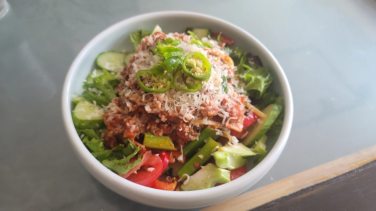 득의양양해서 여기저기 써먹어보고 있다. 이건 파스타 샐러드. 밑에 채소를 깔고 링귀니면을 삶아 올린 후에 라구 소스를 얹고 페타치즈로 마무리.