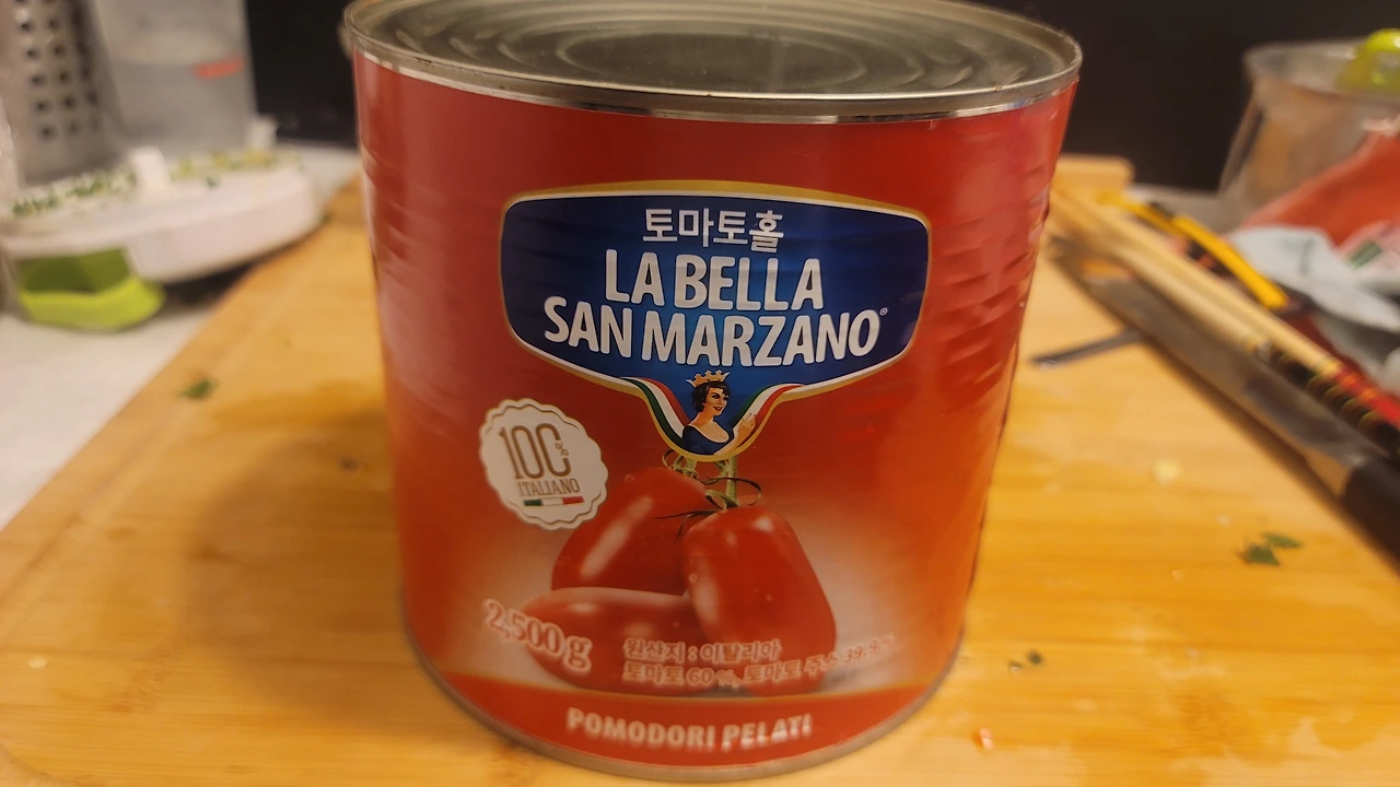 이걸 어디서 샀더라. 아마도 강릉시내 식자재마트였을 것이다. 못 보던 거라 집어들었다. 가격도 괜찮은 편이고, 무엇보다 San Marzano는 원산지표기제도인 D.O.C. 토마토의 고향.