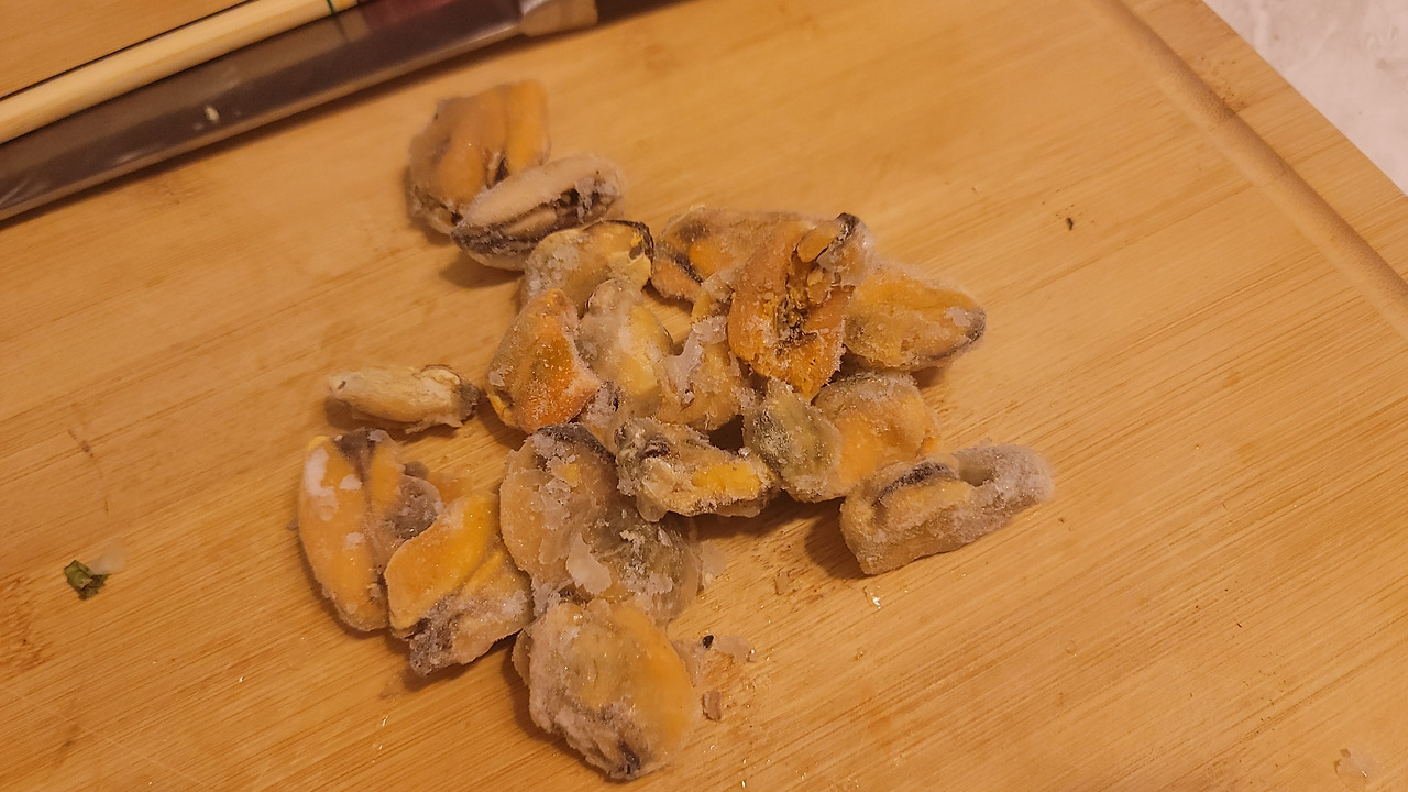 통영식엔 홍합살이 필수. 냉동 홍합살(중국산)은 일단 해동 모드로. 강릉엔 자연산 섭이 유명하니까 나중에 레시피 좀 잡히면 섭으로 해볼 양이다.