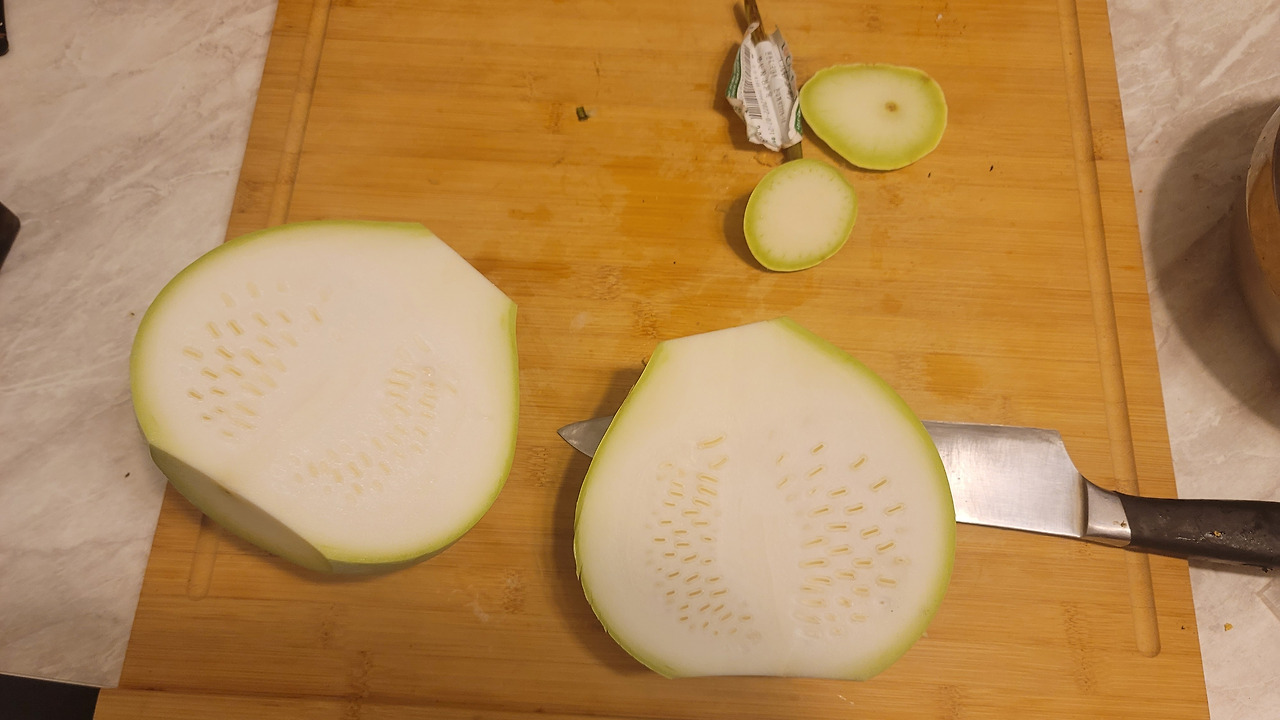 박 손질하기는 생각보다 쉬웠다. 아직 덜 여문 박이라 칼이 삭삭 잘 들어간다.