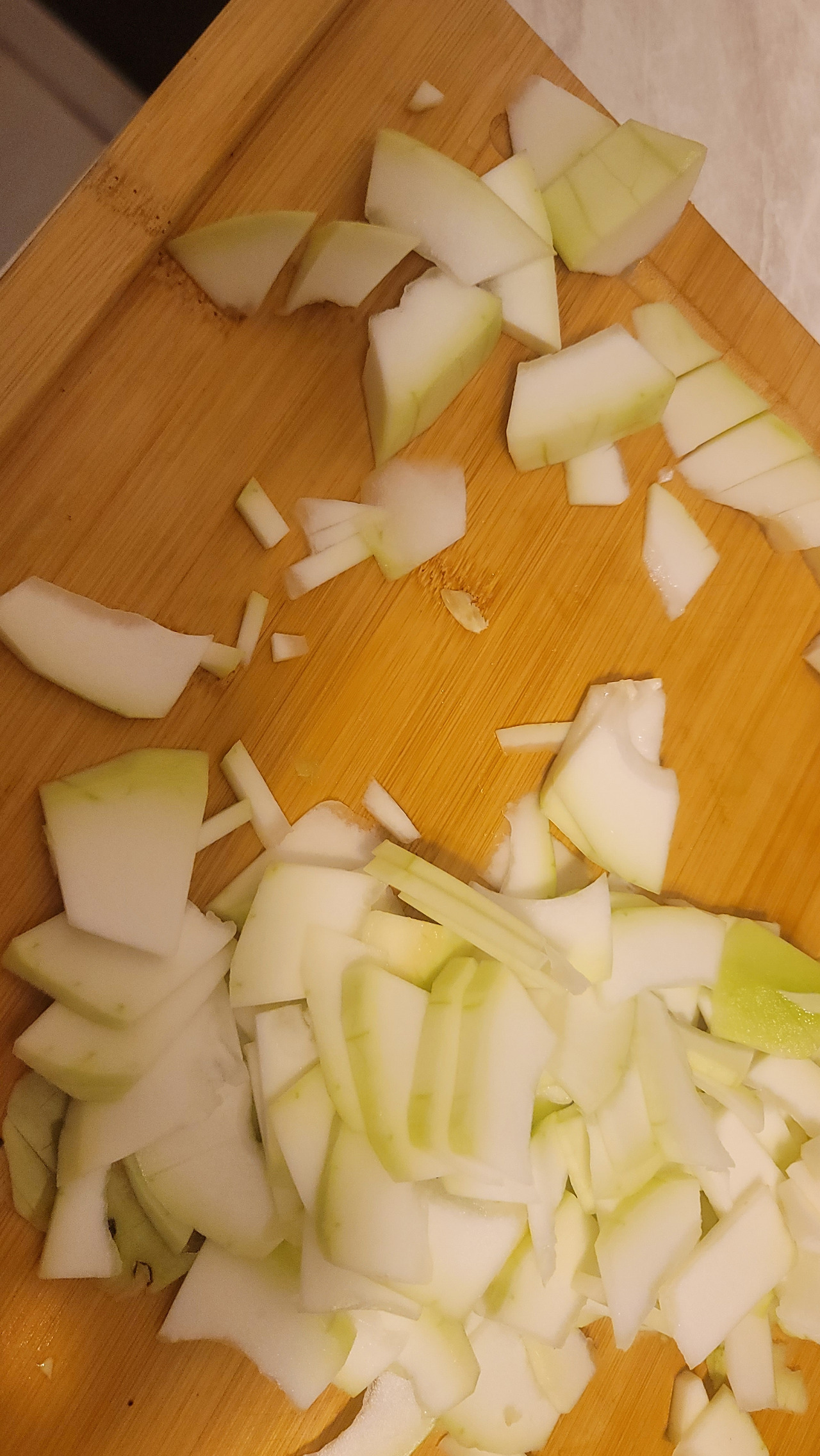 그리곤 썰기. 유튜브의 통영 할매는 얇게 써는 것을 강조하셔서 나도 그렇게. 일부만 좀 두껍게 깍둑썰기를 해보았는데 요리법에 따라서는 이게 더 좋을 수도 있겠다.
