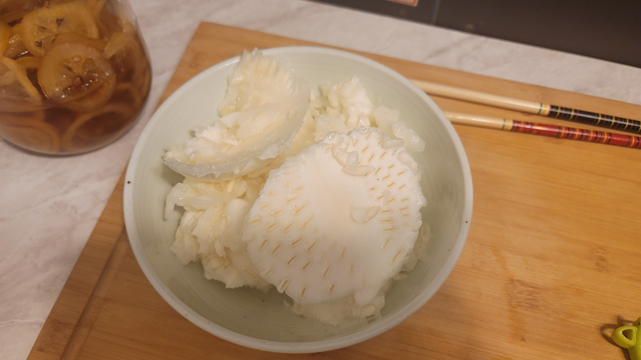 무의 상위호환으로 조림이나 국에 넣어도 좋겠다. 그럴 땐 아무래도 큼직하게 써는 것이 식감도 좋을 것 같다. 이 통영식 박요리도 국물을 더 넉넉히 해서 국처럼 먹어도 된다.