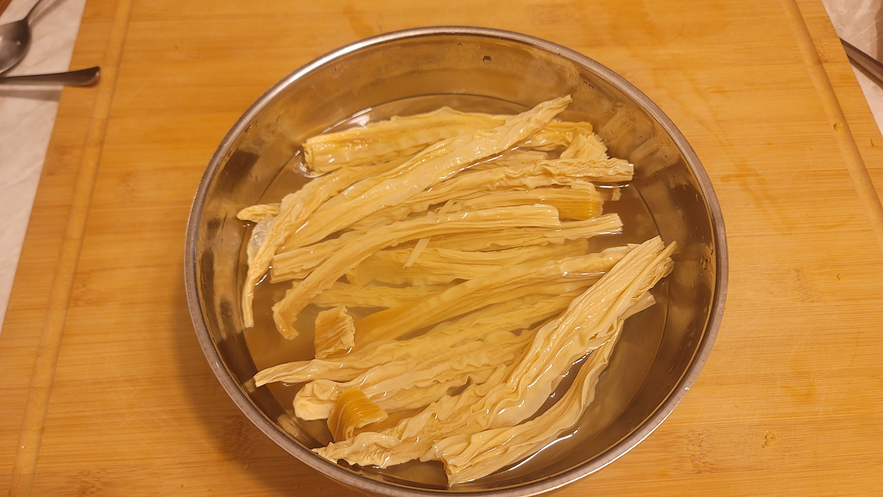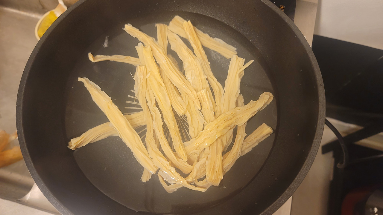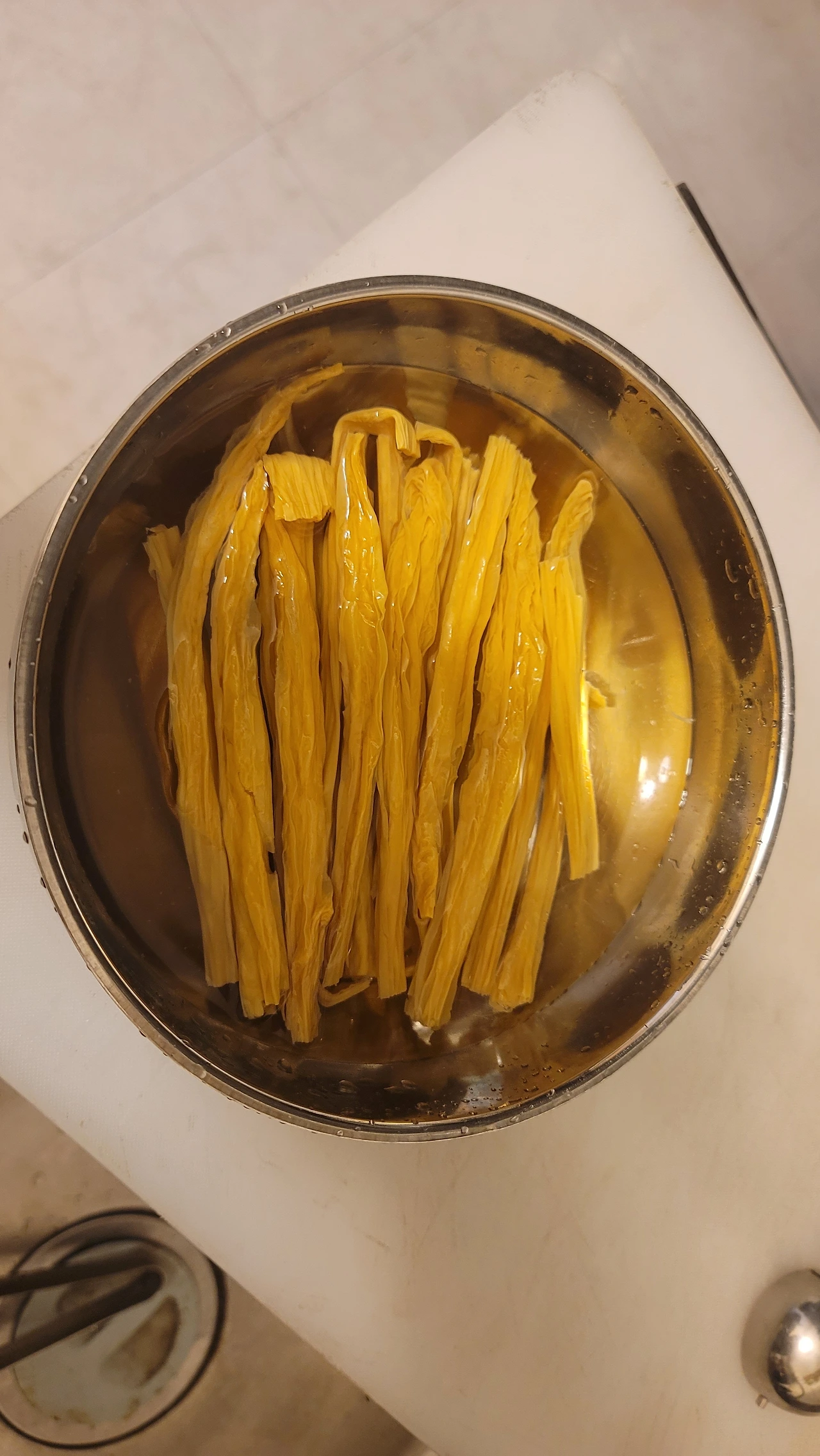 어차피 익혀서 건조한 음식이라 안 익혀도 먹는 데 지장은 없지만 한 번 더 데쳐준다. 팔팔 끓이면 그만큼 부드러워지지만 꽤나 오래 익혀도 풀어지거나 부스러질 정도는 안 되는 게 특징이자 장점이지만, 굳이 부들부들한 식감을 좋아하진 않아서 살짝만 데친다. 아까 꼬들한 것들은 데치고 나서도 좀 불편하게 꼬들한 상태.