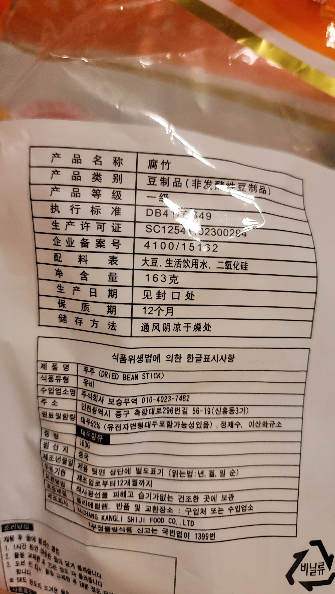 이건 강릉시내 어딘가 대형마트에서 집어온 것이다. 대기업 계열은 아닌 대형마트인데 아시아마트 코너도 있어서 상당히 다양한 중국과 동남아식품을 접할 수 있다.