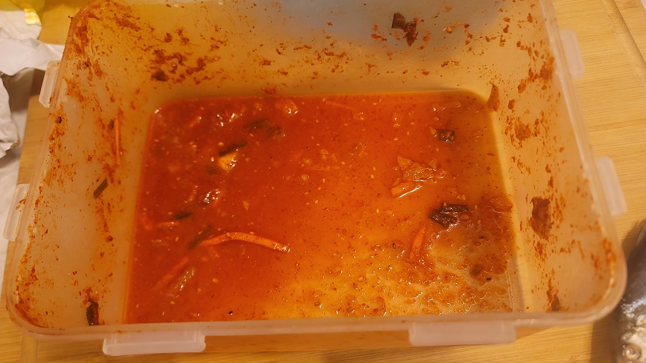 이제 보다시피의 마지막. 하지만 이 맛난 김치국물을 그냥 버릴 수는 없다. 맛있는 김치에 대한 예의가 아니지. 그래서 이 김치국물을 테마로 한 요리를 생각해 보았다.