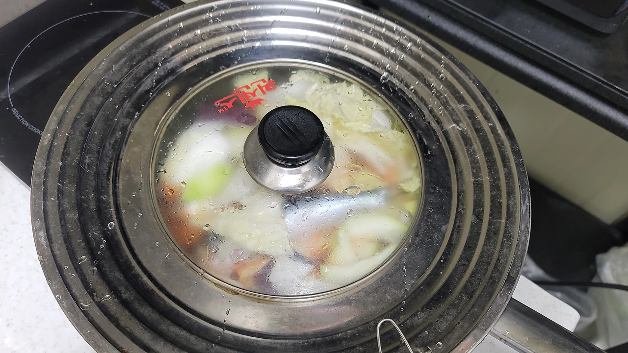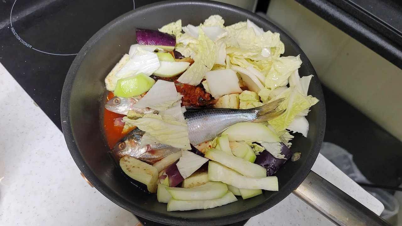 불을 켜서 보글보글 한다 싶으면 중약불로 줄이고 20분 정도 있다가 먹으면 된다. 실은 20분도 필요 없지만 냉동 전어라 시간을 좀 들였다.