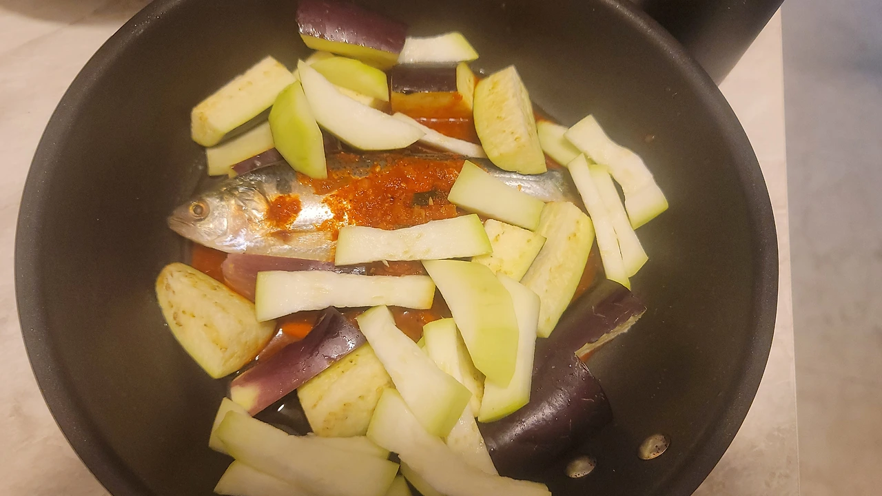 밑바닥에 약간의 기름을 두른다. 기름의 역할은 주로 생선이 눌어붙지 않게 하는 것. 살과 껍질이 얇은 작은 전어는 일단 뒤집으면 형태는 보전 못 한다. 찜을 하는 이유 중 하나가 형태보전을 위해서다.