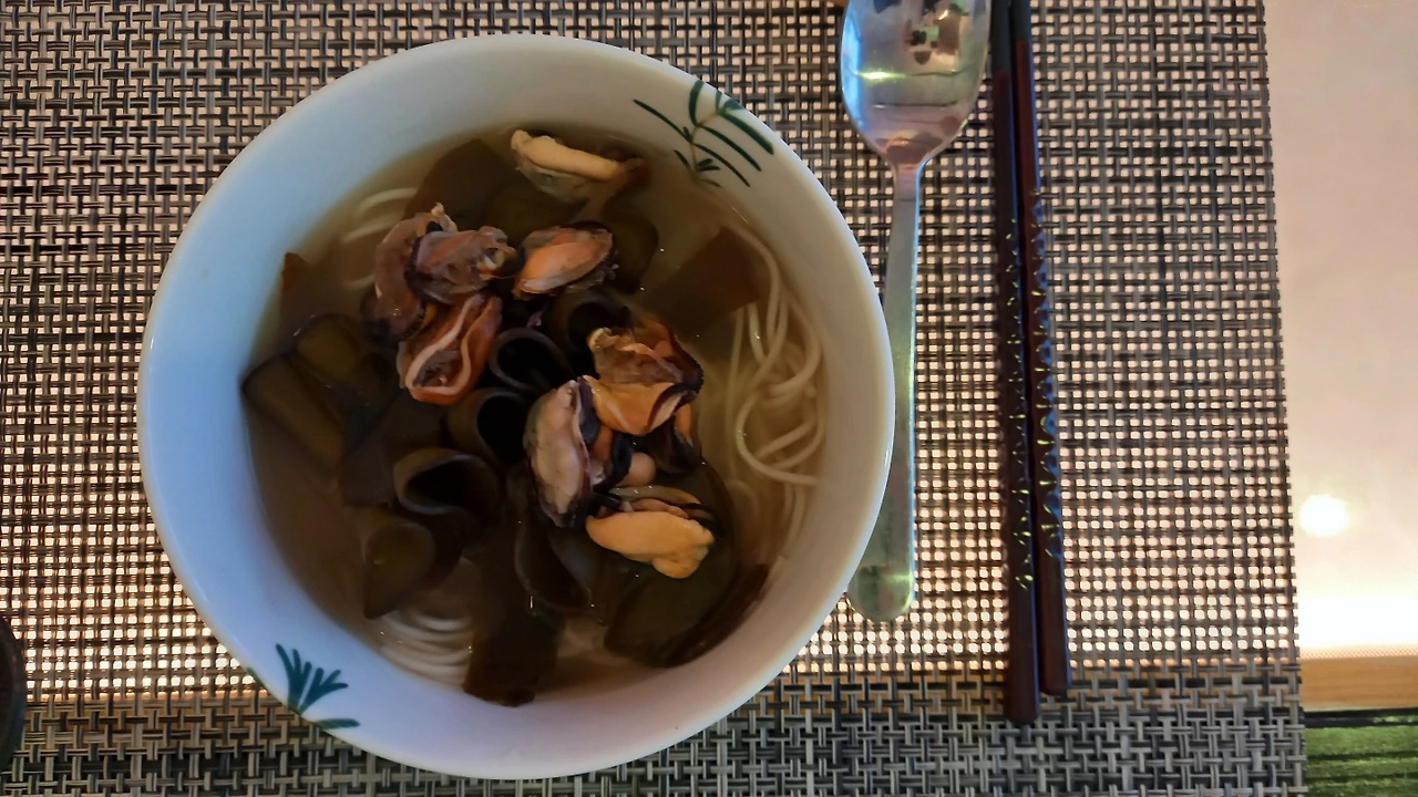 알고 준비한 것은 아니지만 자연산 미역과 섭을 넣어서 담백하게 끓인 국물에 송철국수 탄력 넘치는 중면을 말았다. 간도 담담하게 하고 약간의 참기름과 10시간 넘게 끓인 미역 국물의 녹진함이 속을 달래줄 요리. 그런데 이것도 많이 못드시고 남기시네. 하, 어쩌나...