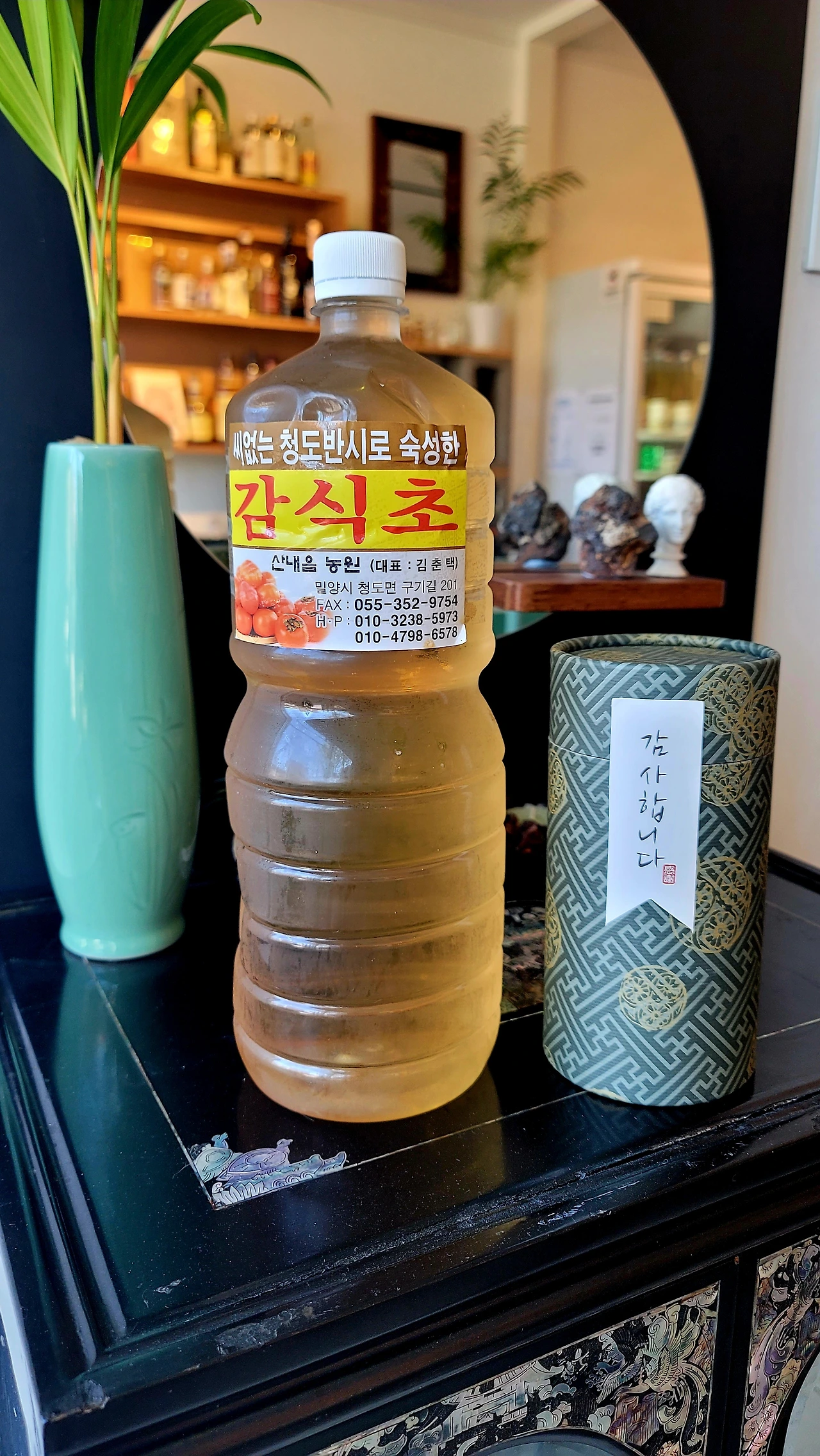 메뉴가 늘 바뀌는 원테이블 레스토랑에서 손님들을 만족시키기 위해서는 요리사의 기술 이상의 능력이 필수적이다. 그 중 하나는 소금, 장류, 식초, 기름 등을 좋은 것을 쓰는 것, 요리사의 '치트키' 들이다. 이 식초는 정식으로 판매하는 것은 아니지만 귀띔해 드리니 위의 연락처로 한 번 문의해보시라. 식초 하나만 바꿔도 요리의 품격이 많이 달라진다.