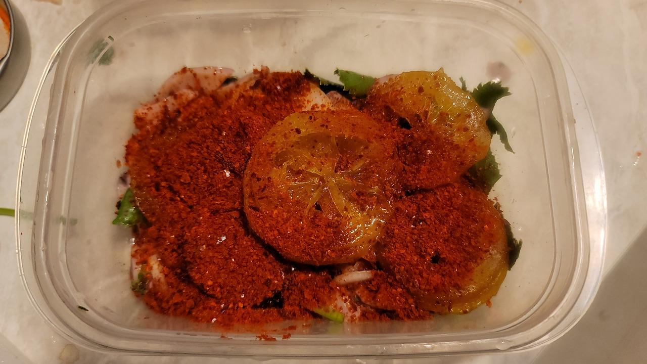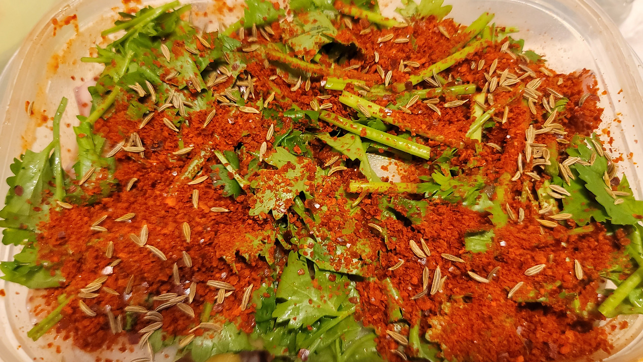 국산 고춧가루, 양파, 마늘, 생강... 에다가 고수와 펜넬로 이국의 분위기를 부여.