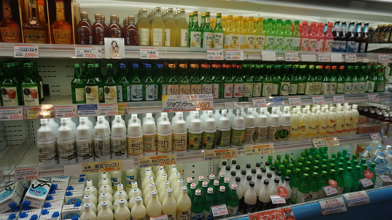 그야 어쨌든, 한주는 길에서 스치는 간판과 사람들만 피부로 느끼듯 정보를 흡수하며 한국슈퍼마켓으로 향했다. 한국 슈퍼에 들어가니 확실히 사람도 버글거리고 한국 식품을 사려는 사람들이 많았다. 젊은 사람들도 많은 것이 인상적이다. 한쪽에는 막걸리 코너도 있다. 막걸리로는 다들 페트병에 든 막걸리인데 유독 이쪽은 사람들이 많지 않다. 짧은 시간이긴 했지만 막걸리 사가는 사람은 못 보았다. 뭐 이렇게 바쁜 곳에서 그래도 팔리니까 진열하겠지만, 이 막걸리들로는 일본 자체 생산의 막걸리와는 품질로도 비교가 안되고 심지어 가격의 강점도 별로 없다. 막걸리 종주국인 한국의 상품이라면 호기심에 마셔볼 수는 있겠지만 술맛을 아는 사람이라면 이런 가격에 계속 사 마실 것 같진 않다고 생각했다.