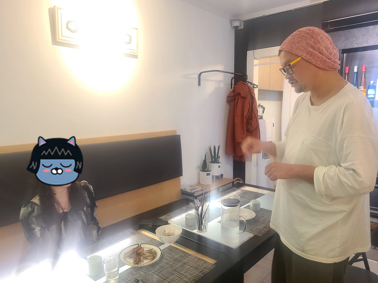 어쨌거나 이 코리안 샌드위치(?)에 막걸리까지 한 잔 마시고는 엄지손가락을 척 들어셨다. 뿐만 아니라 이렇게 즉흥적으로 요리를 해주는 경험은 처음이었다며 매우매우 기뻐하셨다. 얼터렉티브살롱 간판 대신 걸린 시그널1에 대한 설명도 해드렸더니 예술 전공하는 자기 시스터에게 사진 찍어 보내기도 하고, 매우 인상 깊은 곳이었다는 말씀을 남기고 가심. 오늘도 성공적.