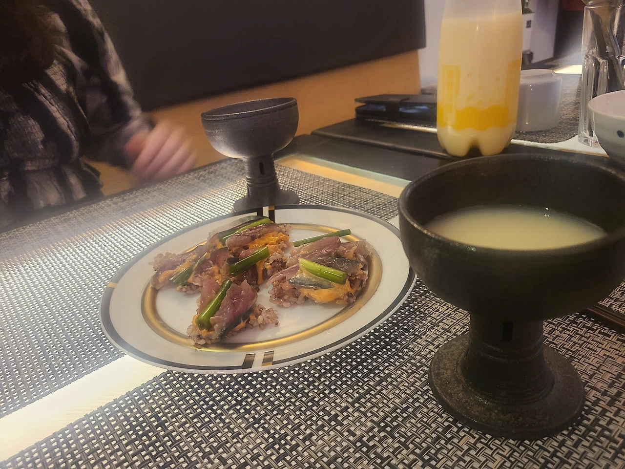 누룽지를 빵 대신 쓰고 박고추장 마요네즈로 베이스 소스를 삼아 발랐다. 그 위에 어제 촛물에 담궈서 아직 조금 덜 된 고등어 초절임과 실파를 올렸다. 맛이 푹 든 삼치와 방어도 있는데 내가 쓰는 초는 네덜란드에서 쓰는 것보다 훨씬 진하고 강한 맛이라서 좀 맛이 덜 든 것이 오히려 낫겠다 싶었다. 그렇게 해도 조금 짠 맛이 강해서 맥주안주 소리 나올 스타일이다. 그러니 영월의 얼떨결에 옥수수 스파클링 막걸리 한 잔을 곁들이면 딱 완성. 술도 딱 이 술이 가장 어울릴 것 같아서 청하지도 않았지만 서비스로 내었다.