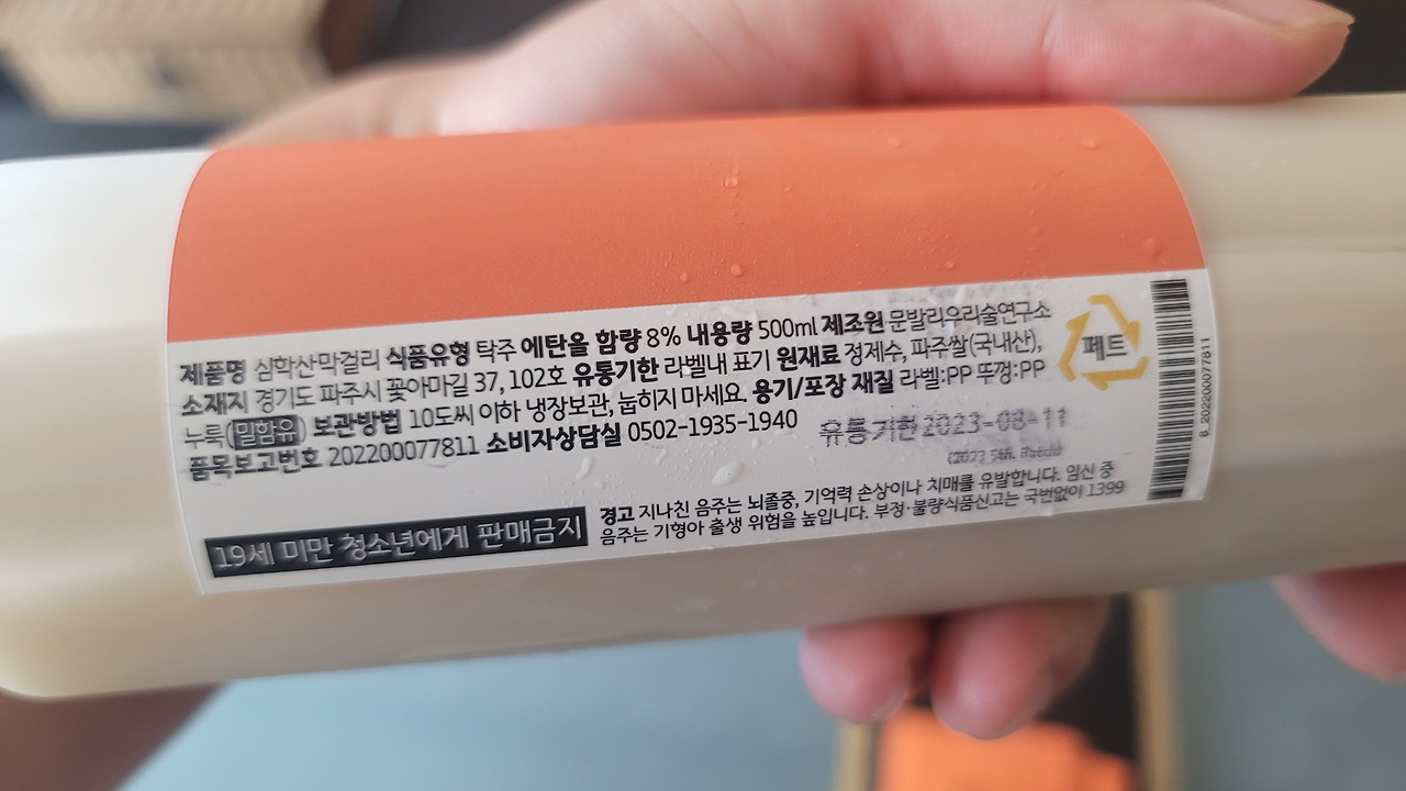 재료: 파주쌀(국내산), 누룩(밀함유)