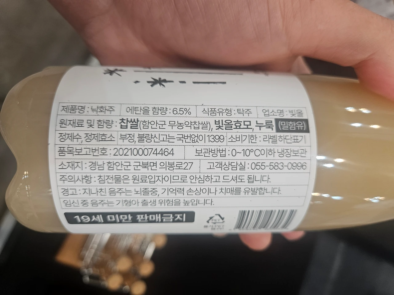 구운쌀로 만든었다는 낙화주. 누룩외에도 연잎에서 자체배양한 '빛올효모'를 쓰고 쌀은 함안 지역의 유기농 찹쌀을 썼다고 한다. 재료에서부터 비용절감보단 의미를 찾는 이런 노력이 좋다.