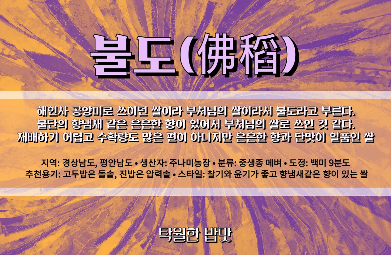 - 밥짓는 요리사 백웅재대표가 현장에서 맛있는 밥을 지어드립니다. 밥맛과 술맛을 비교해서 쌀의 특성을 파악해 보세요!