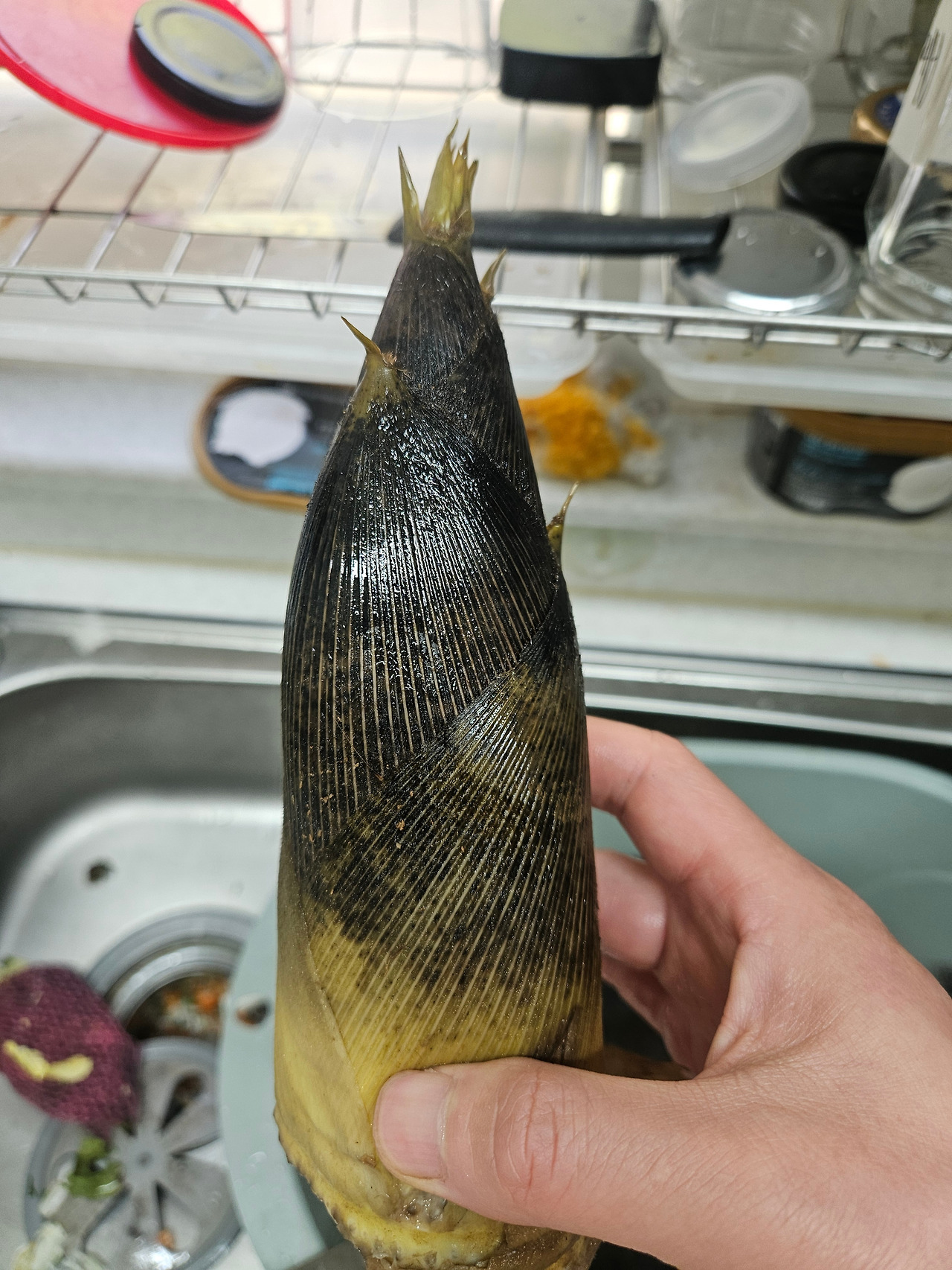 참고로 이건 아기 사이즈. 올해 봄이 추워서 죽순들이 잘 안 된 편이다. 상품성 있는 큰 것은 물론 농장에서 처리하고 체험단인 우리는 아기죽순들을 많이 캤다.