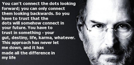 예술과 기술이 융합된 애플의 혁신은 그때부터 시작됐다. 처음에는 그도 서로 다른 두 점의 연결을 알지 못했다. 그때그때 옳다고 믿는 신념을 따라가다 보니 결국 알게 된 것이다. 이렇게 흩어진 점들을 잇는 ‘connecting the dots’ 에 대한 그의 말은 다음과 같다.