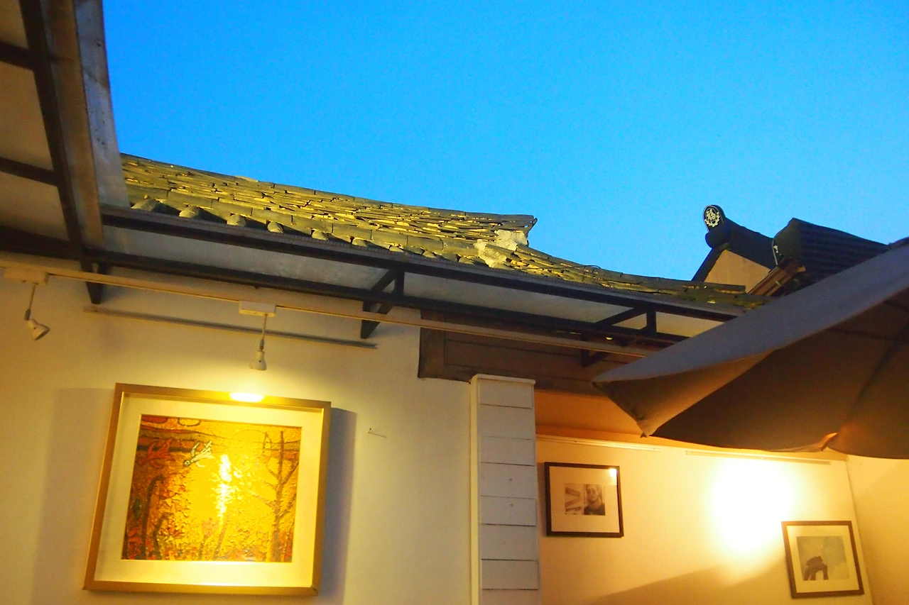 그가 주문한 아이스커피 한 잔을 서둘러 내려서 다시 중정 마당으로 나갔다. 그러고 보니 저 청년 며칠 전에도 왔던 친구다. 처음엔 혼자 왔다가 나중에 다시 친구들까지 죄다 불러 모았던 게 기억이 난다. '동네 청년일까?' 궁금한 게 있으면 참지 못하는 성격. 어차피 혼자 온 손님인데 몇 마디 건넨다고 기분 상할 리도 없을 터. 슬쩍 '나도 햇살 좀 받고 싶어서...', 라고 표정까지 지어가면 옆 자리에 앉았다. 보통은 주인이 그렇게 옆자리에 앉으면 손님은 어떤 기분이 들까? 하지만 뻔뻔하게도 그런 생각은 전혀 들지 않았다.