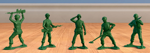 '토이 스토리'에 애니메이터들이 보여준 열정은 대단했다. 심지어 다리가 바닥에 붙어 있는 플라스틱 초록 군인들의 움직임을 제대로 구현하기 위해서 애니메이터들은 널빤지에 못질을 해서 붙인 신발을 신고 며칠 동안 걸어 다니기도 했다.