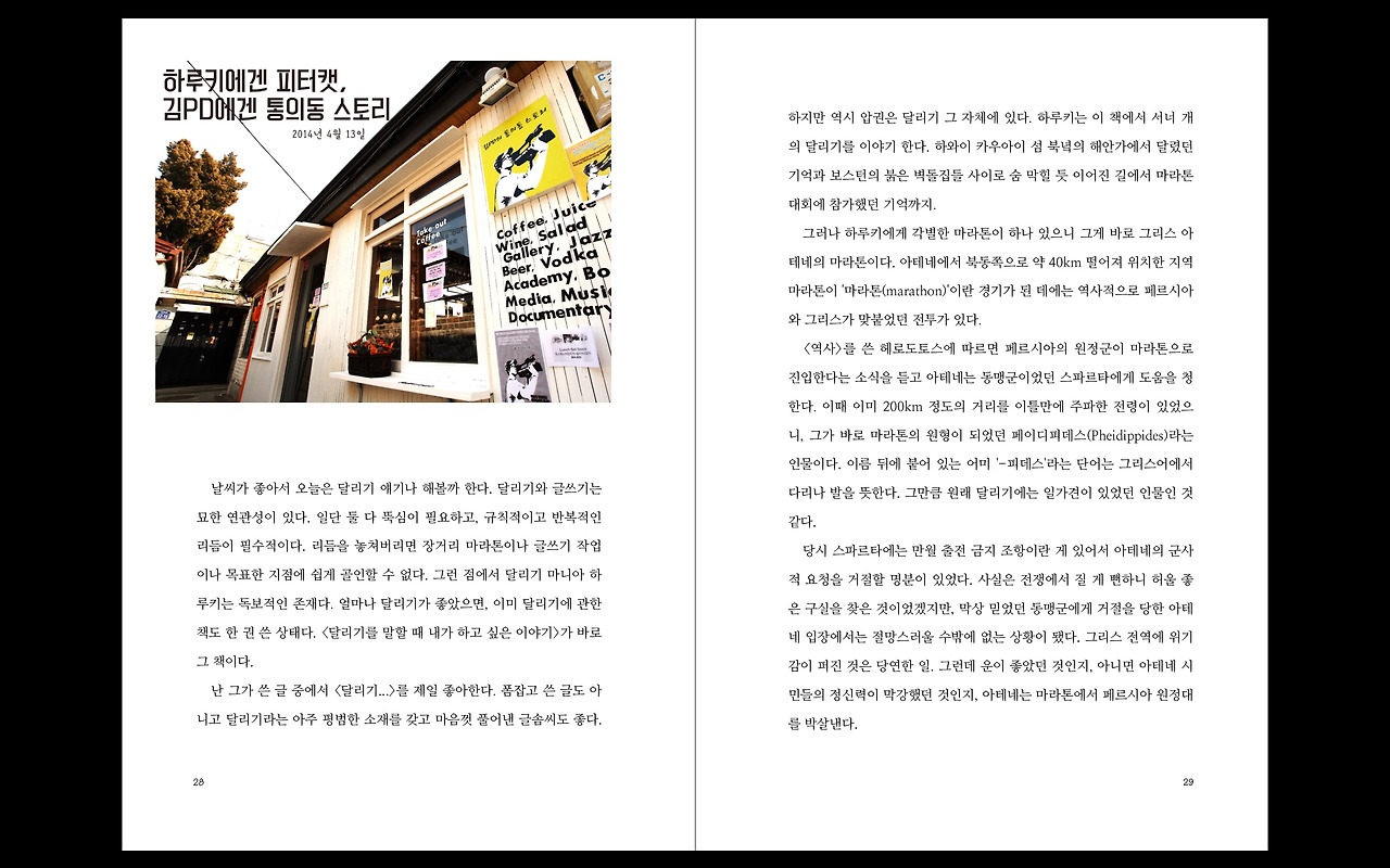 결국 그 책과의 인연으로 나는 경복궁, 서촌 통의동 골목길에 작은 까페 하나 오픈하게 된다. 한 권의 책이 이어준 낯설고도 재미있는 인연이었다. 그곳에서 세 권의 책과 두 편의 시나리오, 한 권의 소설을 썼다. 이 정도면 지난 5년 동안의 시간은 나름 즐거웠고 최선을 다한 시간들인 것 같다.