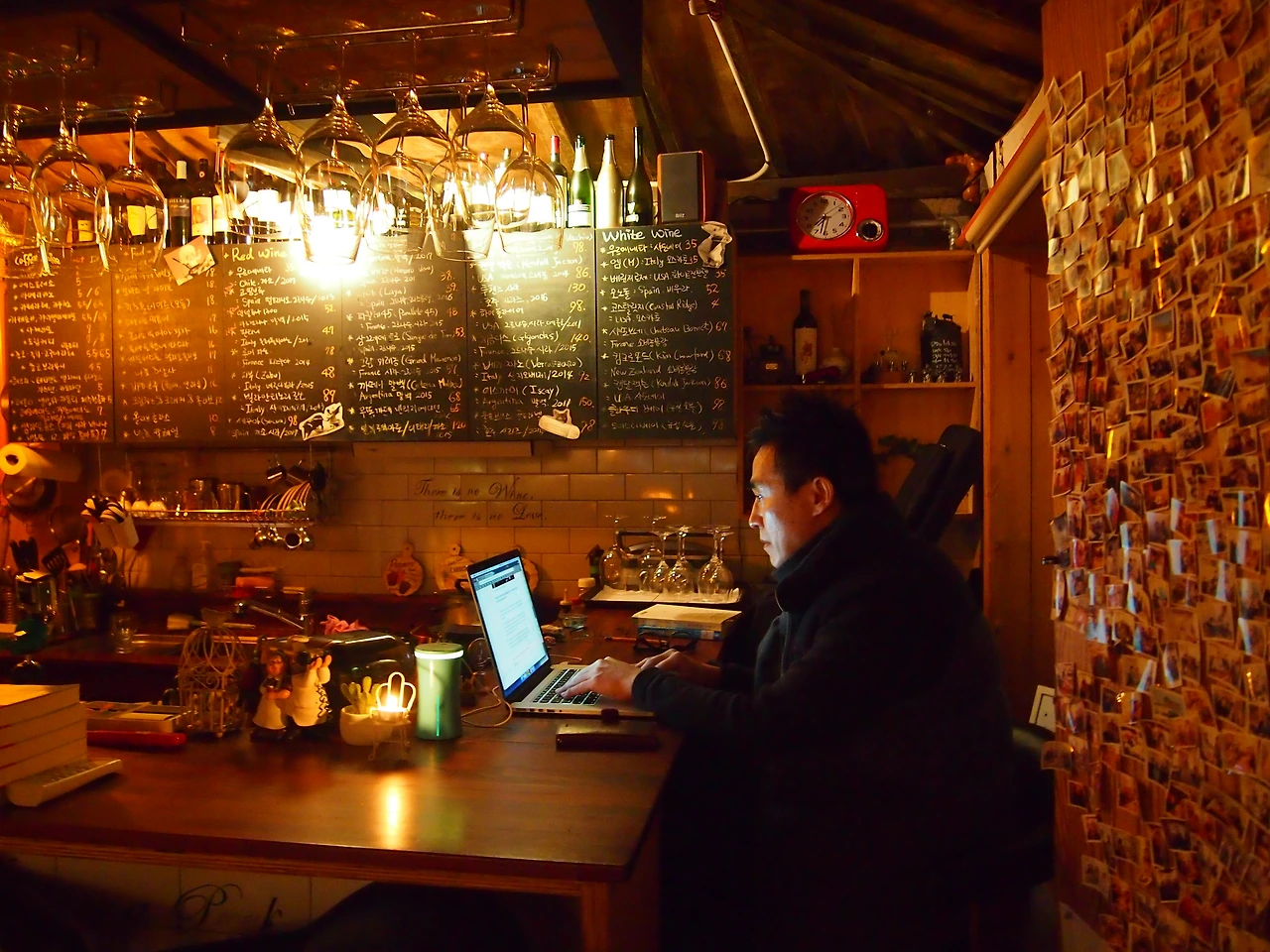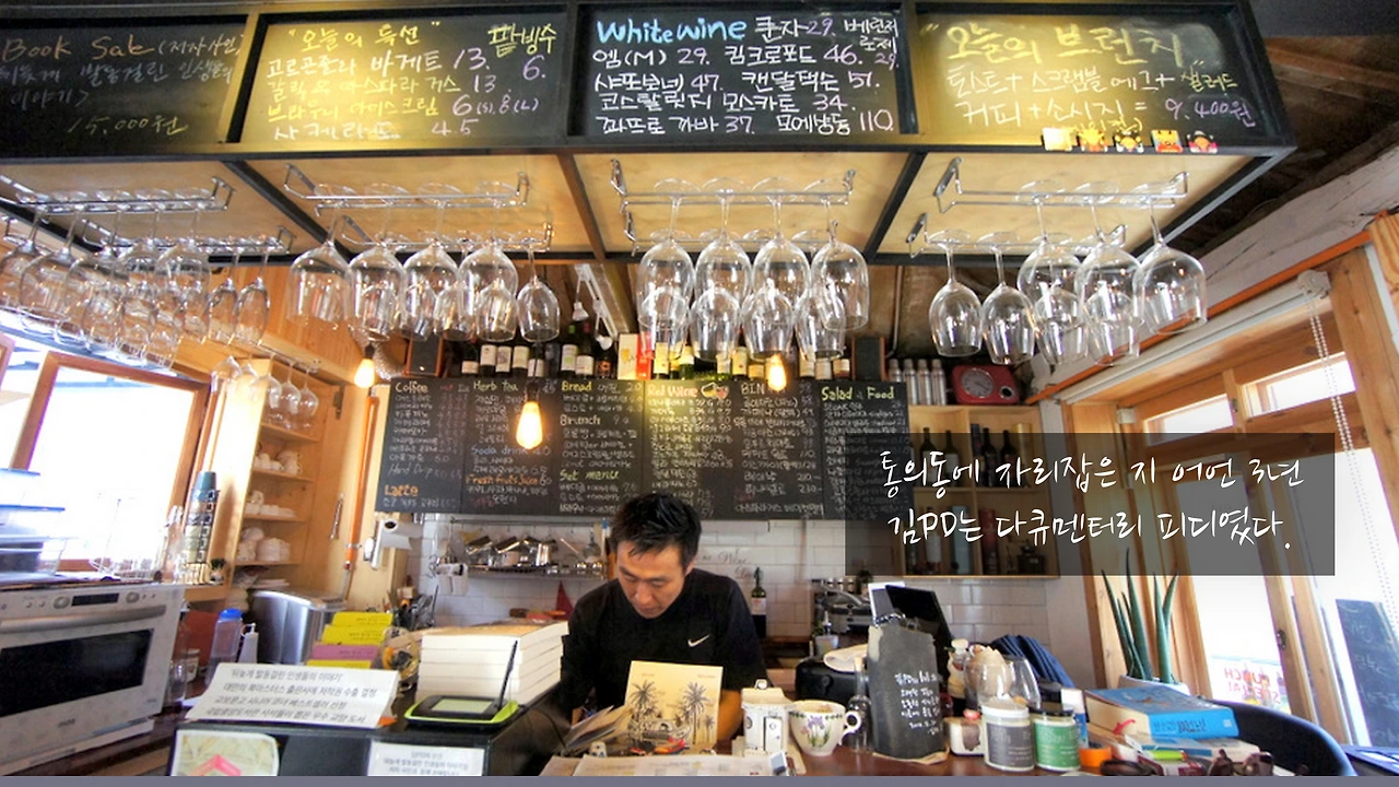 가끔은 '낮에는 커피를 내리고 밤에는 와인을 서빙하며 틈틈이 글을 쓰는' 서촌의 골목길 작가를 만나기 위해 먼 길을 달려오는 손님들도 있다. 가게 문을 열고 들어올 때 벌써 눈빛부터 다르다. '김PD가 누구지?'하면서...