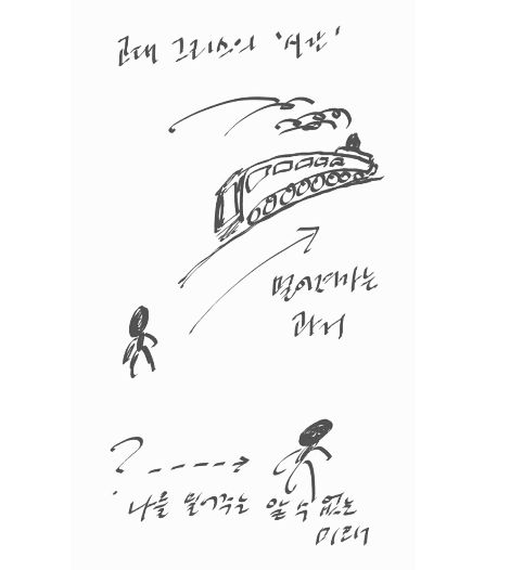 미래에 대한 생각도 다르지 않다. 우리에게 시간은 미래를 거쳐 과거로 흘러가는 강물이다. 언젠가는 우리 앞에 다가와 흘러가버리는 것이 시간이었다. 이럴 때의 미래는 그저 기다림의 대상일 뿐이다.