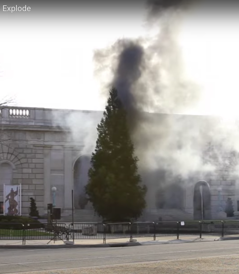 그런데 정말 실제로 크리스마스에 악몽 같은 일이 일어났던 적이 있습니다. 2012년 미국 워싱턴에서 있었던 일입니다. 크리스마스를 한 달도 남겨놓지 않은 어느 날, 미국인들이 가장 자부심을 느끼는 상징적 장소 중 하나인 스미소니언 박물관 앞에서 대형 크리스마스 트리에 폭약을 장치에서 터뜨리는 아주 기괴한 퍼포먼스가 벌어진 것입니다.