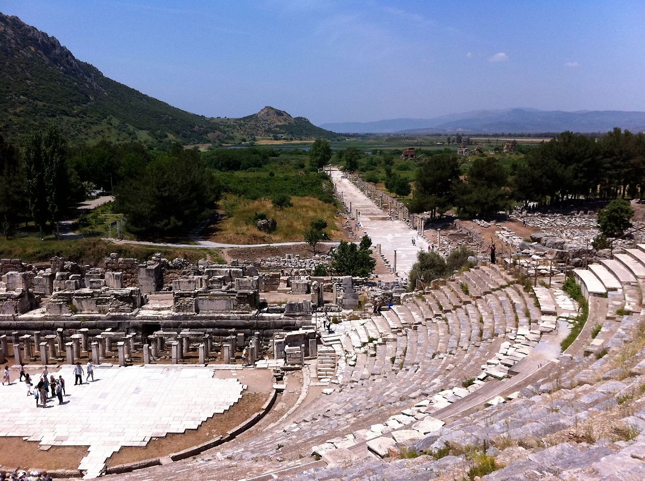 물론 수 천 년의 세월이 흘러 에페소스 같은 경우는 바다가 땅으로 변했다. 지금 가서 보면 바다는 보이지 않고 척박한 땅만 보일 뿐이지만, 극장의 돌계단에 앉아 탁 트인 평야를 바라보며 '저 넓은 땅이 바다였다니'하고 속으로 생각하며 감탄했던 기억이 있다. 그런데 왜 그들은 바다를 향해서 극장을 만들었을까?