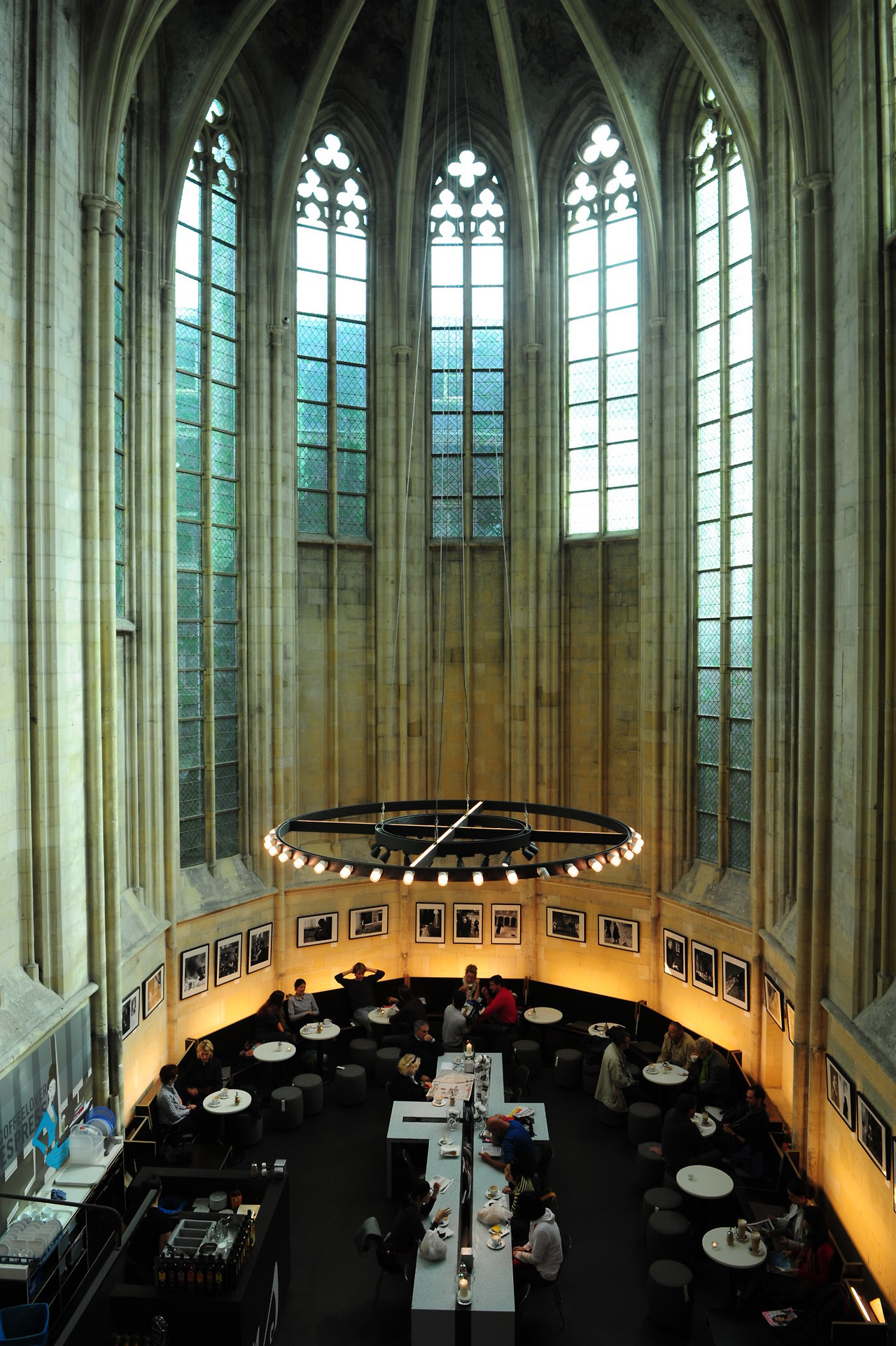 * 서점으로 리모델링 되기 전 성당의 모습. 모터쇼 전시장, 권투경기장, 창고 등으로 성당은 활용되고 있었다.