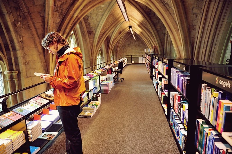 옛 성당의 나무로 만든 육중한 현관문이 제일 먼저 눈에 들어왔다. 그곳을 지나자 순간 어두컴컴한 분위기가 느껴졌다. 머리 위로는 수십 미터 높이의 천장이 사람을 압도한다. 그 웅장한 성당 안에 가지런히 진열된 책들이 조명빛 아래 반짝이고 있었다. 그것이 내가 그 성당 서점을 본 첫 느낌이었다.