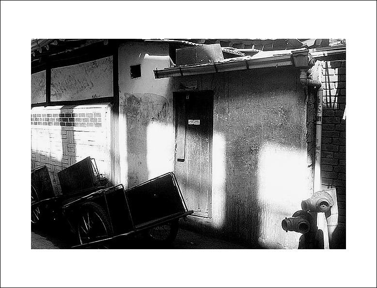 수원의 오래된 한옥가옥들이 늘어선 골목은 평일 오후의 적막함을 품고 있었다. 사람의 발걸음이 드문 시간, 햇살은 벽을 타고 조심스럽게 내려와 바닥에 따스한 흔적을 남겼다. 그 골목 한편에 놓인 리어카는 연탄배달을 기다리는 듯, 묵묵히 그 자리를 지키고 있었다. 바퀴에 묻은 먼지와 손잡이의 닳은 흔적은 오랜 시간의 노동을 말해준다. 그러나 지금 이 순간만큼은, 그 리어카도 쉬고 있는 듯했다.