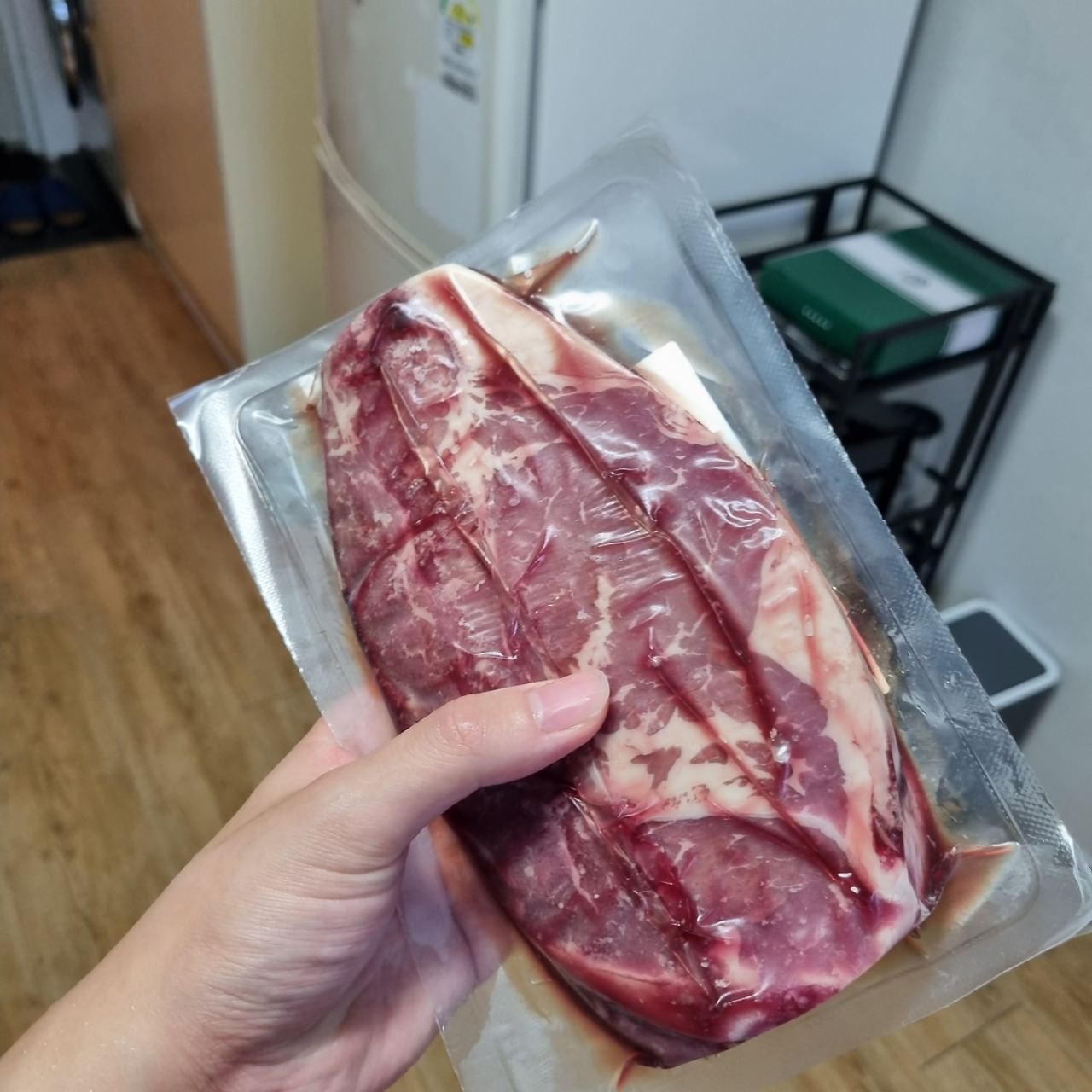 두께 3.5-4센치의 미국산 채끝. 마블링은 많은 편이 아니었다.