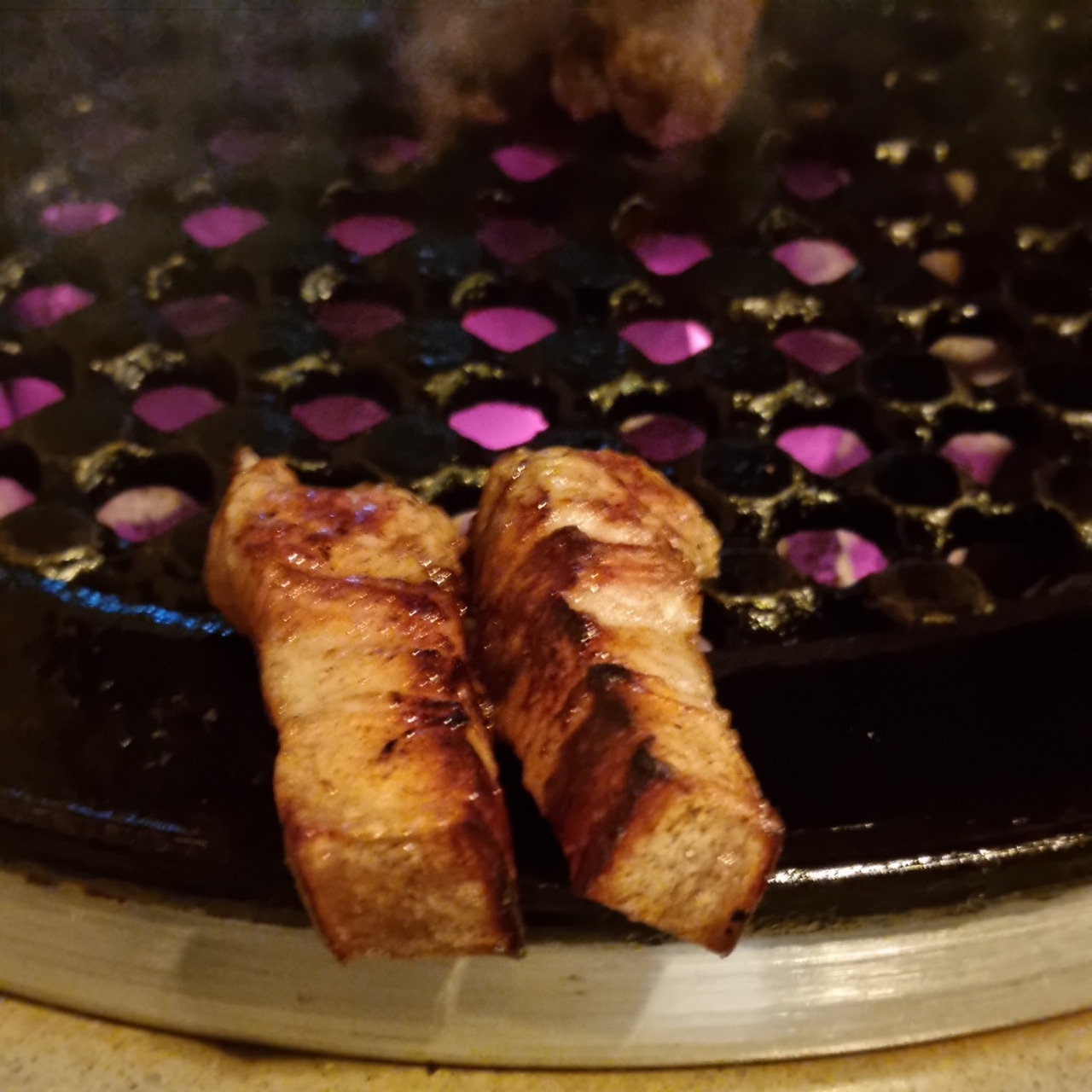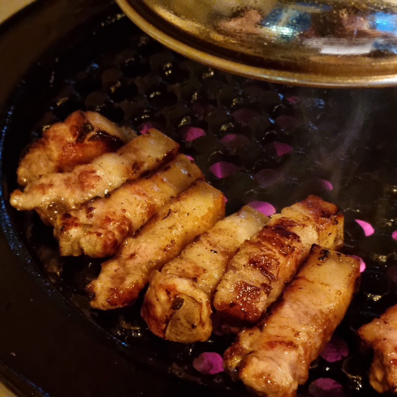 삼겹살의 경우 적당히 기름기 있고 치감은 일반 백돼지와 비슷했던 정도의 느낌을 받았습니다. SGP는 엄청난 특징성이 있는 것은 아니었지만, 마찬가지로 맛있는 고기였습니다. SGP까지 먹으면서 든 생각은, 고기 수준들이 정말 다 높단 점이었습니다. 제가 소믈리에급 미각을 갖고 있진 않은 덕에 블라인드로 가려낼 수는 없지만, 고급 품종에 가게별 숙성과 그릴링을 더하면 일종의 맛의 보증 수표 역할을 할 수 있겠단 느낌을 받았네요.