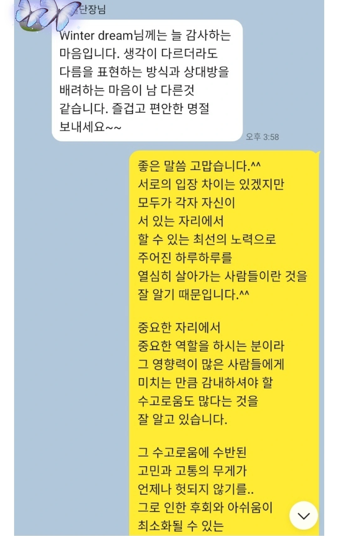 그래서 5개월여 동안 개인적으로 그분에게 답변을 받은 적은 없었습니다. 그렇듯 개인적인 친분이 있던 것이 아니었으니 명절이라고 안부 메시지를 마음 편히 보낼 대상 또한 아니었습니다.