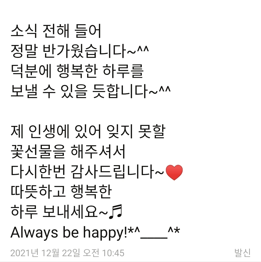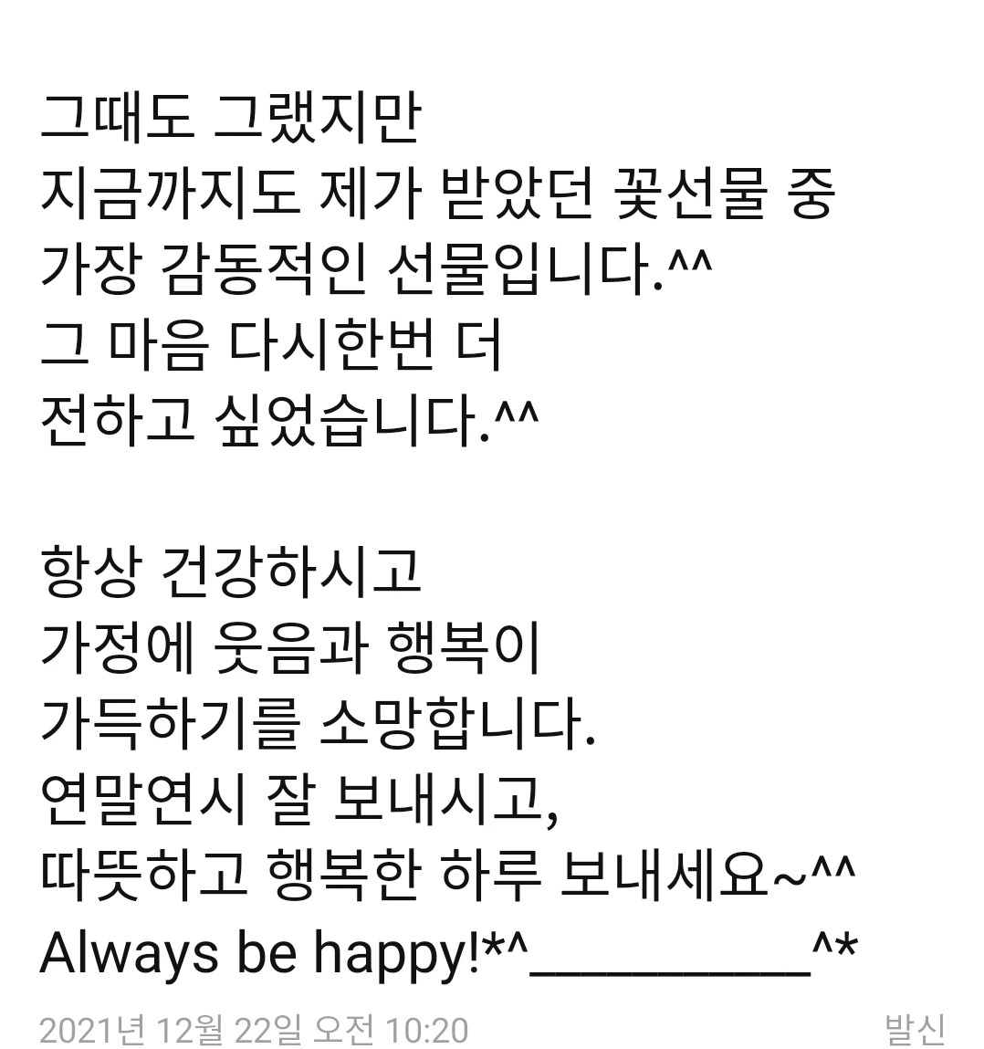 그다음이 언제가 될지 아직 잘 모르겠지만, 이번엔 그분을 만나러 가는 길에 예쁜 꽃 한 다발을 준비해서 갈까 생각 중입니다. 10년 전 제가 그랬듯이 그분에게도 평생 잊지 못할 감동의 기억으로 남을 꽃 선물이 될 수 있도록...^^