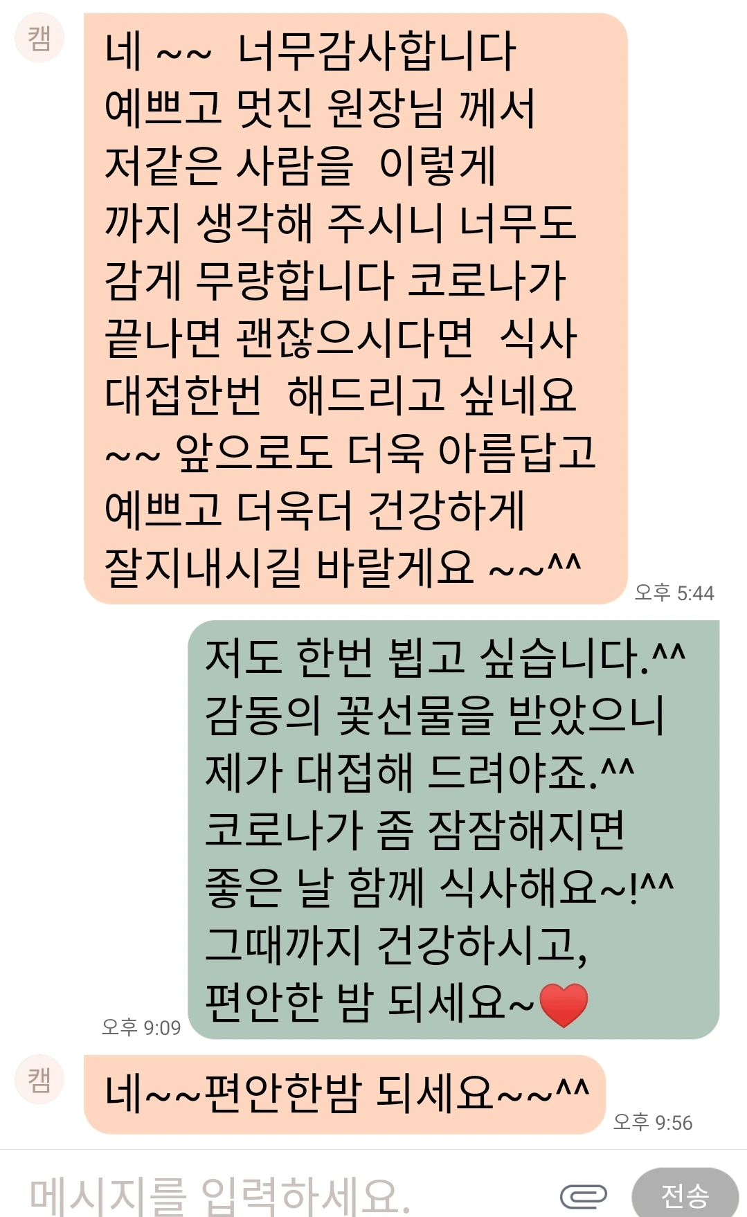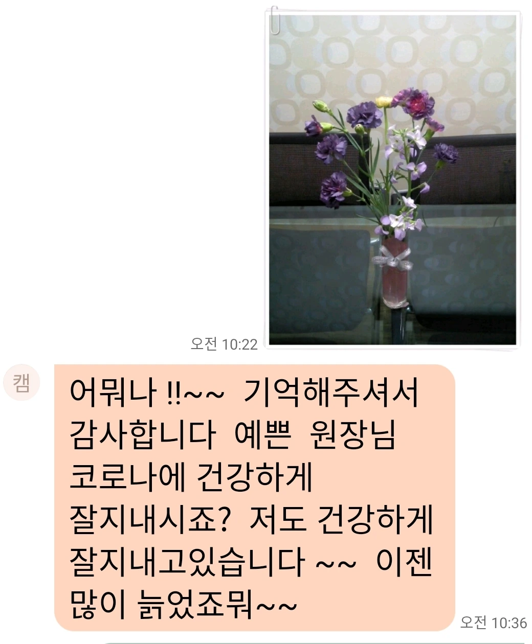 혹시나 싶어 전화를 드렸더니 아니나 다를까.. 제 짐작이 맞았습니다. 집에 꽃을 사둘 일이 있었는데 평소 꽃을 좋아하는 제 생각이 났다고 하셨습니다.