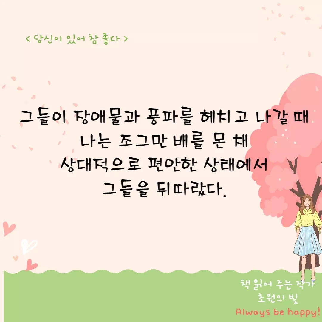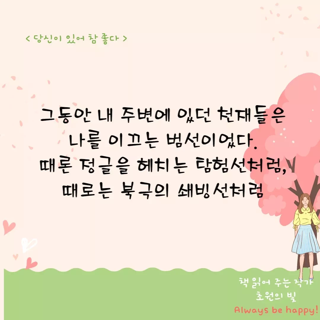 드넓은 초원에 비치는 한줄기의 빛처럼 누군가에게 따뜻함과 행복을 전해주는 글과 삶을 짓고 싶습니다. Always be happy!*^____^*