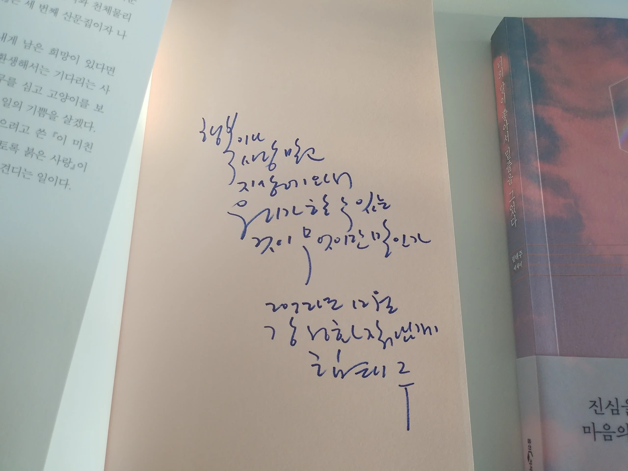 사실 전 참석했던 분들이 준비된 책을 모두 사가는 바람에 그날 사인을 받지 못했습니다. 그런 상황을 알게 된 작가님은 출판사에 연락해 책을 받아 친히 사인을 해 우편으로 보내 주셨습니다.