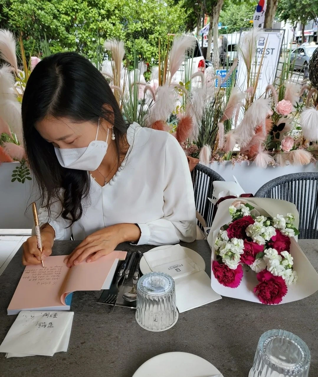 인사를 나누자마자 제게 어울릴 것 같다며 꽃다발을 내밀던 그녀. 제 책을 감명 깊게 읽었다면서 지인들에게 선물할 책 몇 권을 내밀며 사인을 해달라고 했습니다.