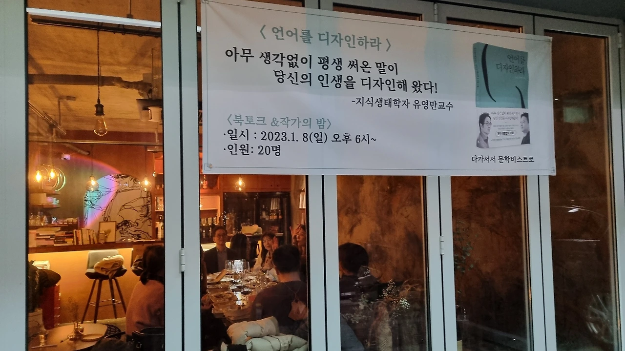 문화예술인의 아지트, 고품격 문학비스트로를 지향하는 다가서서에서는 작가님들의 북토크도 진행되고 있습니다. 지난 12월 오픈 파티가 있던 날, 그녀의 글쓰기 스승님이자 친분이 있는 림태주 작가님의 북토크가 있었습니다.