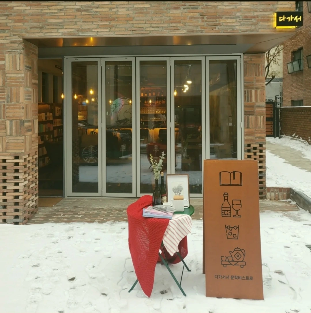 그녀는 울산에서 독립책방인 '다가서서'를 운영했습니다. 다가서서는 '다름의 가장자리에 서있는 서점'이라는 뜻입니다. 그러다가 지난해 12월 합정역 근처에 새롭게 '문학 비스트로 다가서서'를 오픈했습니다.