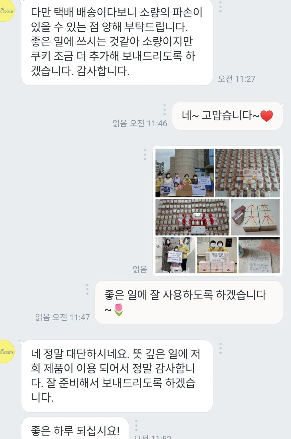 사실 그렇게 서비스 쿠키를 주신 사연이 있습니다. 아무래도 쿠키다 보니 배송 과정에서 파손이 되어 버렸던 적이 있어 귀한 분을 위해 준비하는 선물이니 각별히 신경을 써달라 부탁드렸던 적이 있습니다.