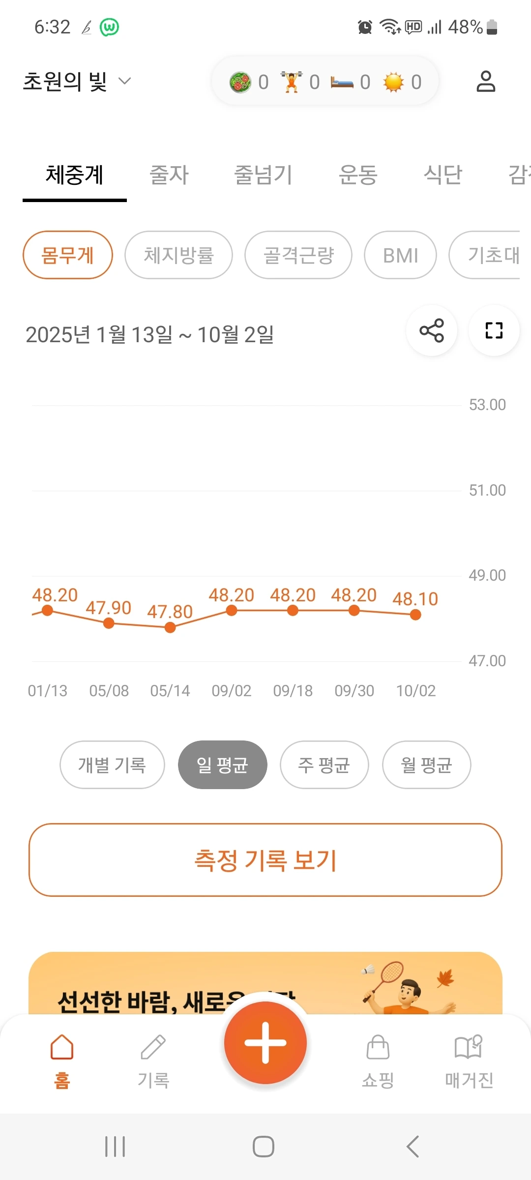 근력 운동 30분, 걷기 1시간. 일주일 5회 이상으로 잡고 실천 중입니다. 비가 많이 내리는 날을 제외하고는 한여름에도 매일 걸었습니다.